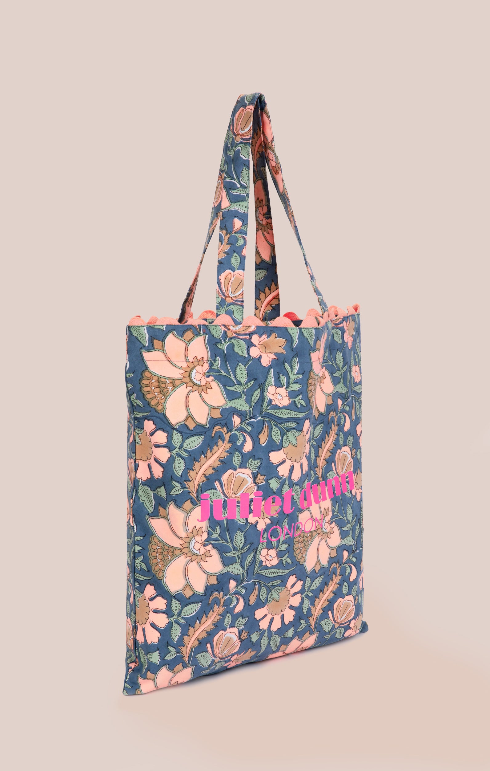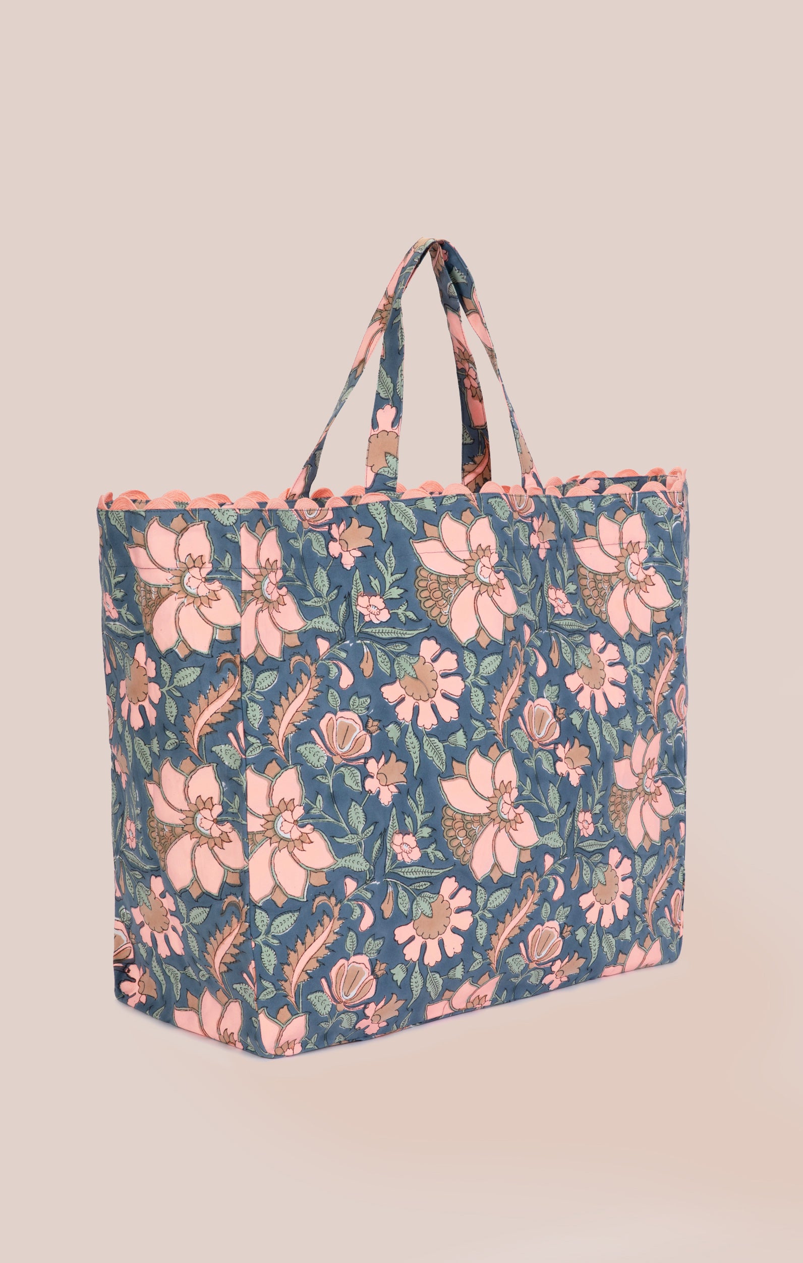 Floral Tote Bag in Navy Block Print