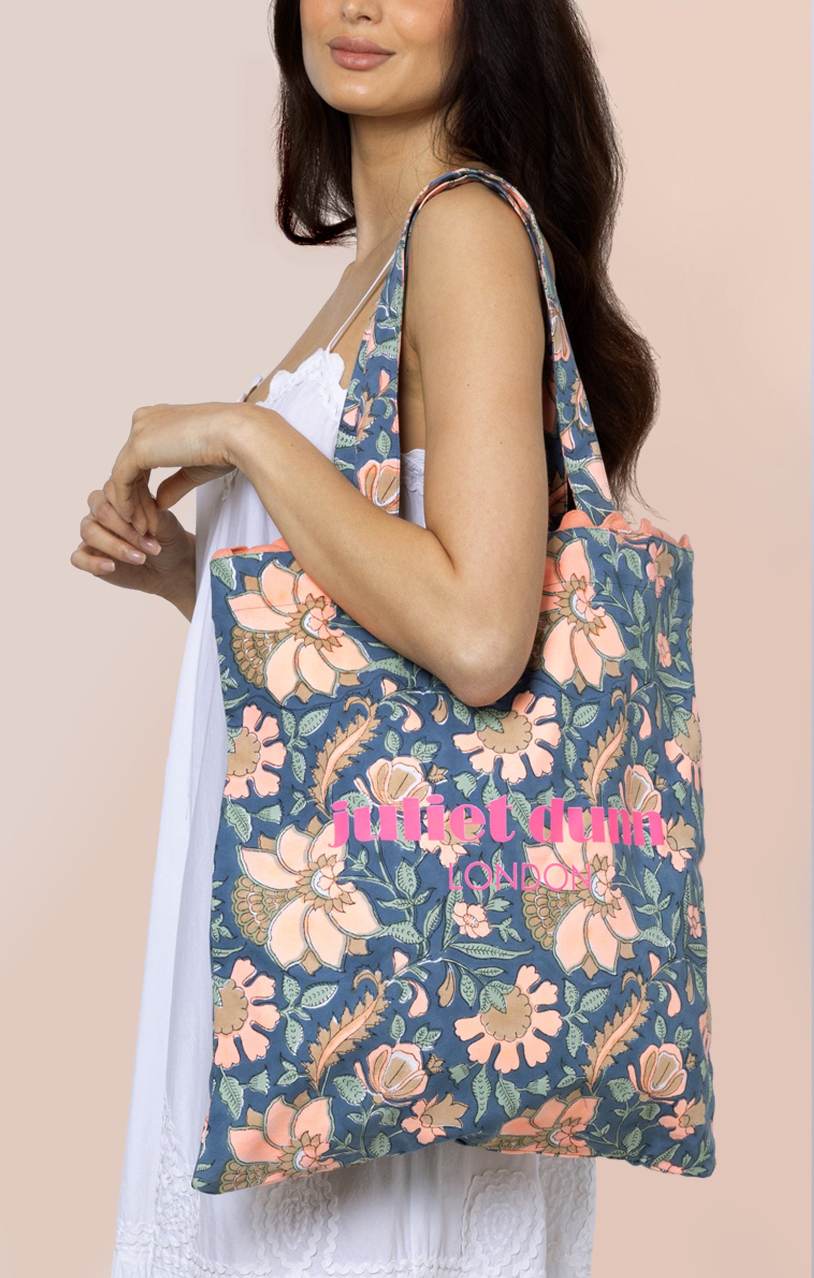 Floral Beach Bag in Navy