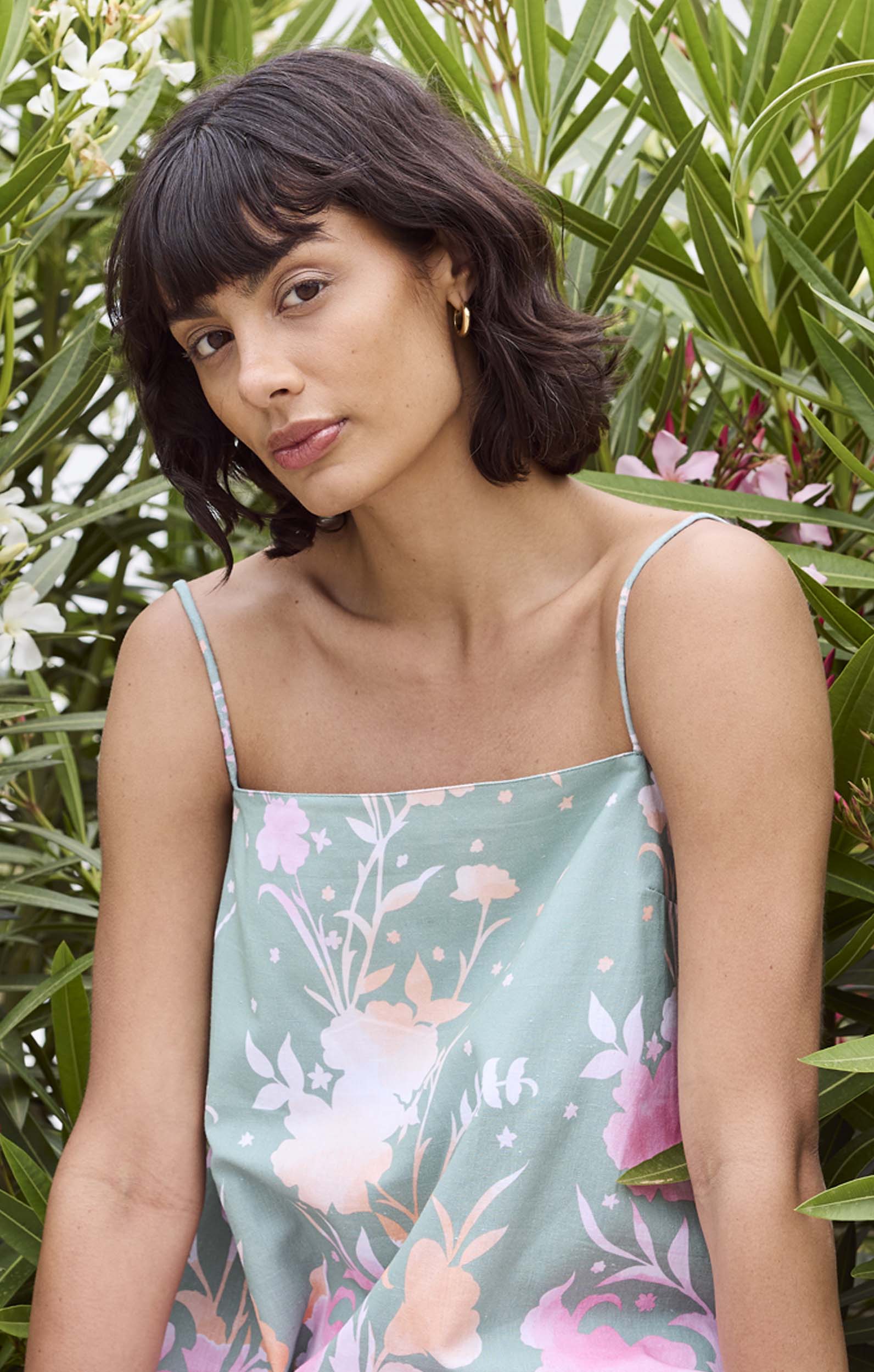 Square Neck Maxi Dress in Cactus Green Oversized Floral Print