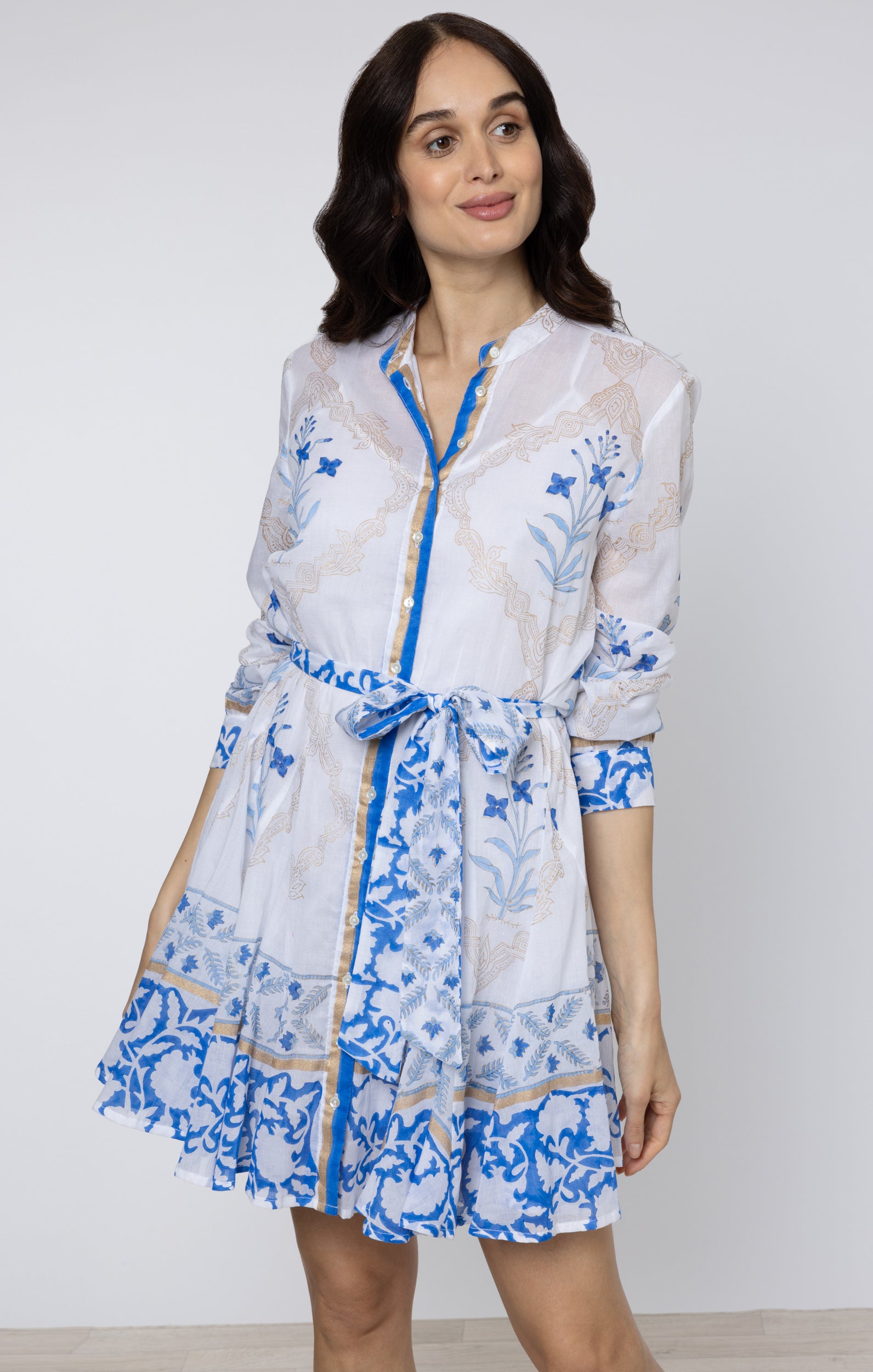 Aqua Floral Block Printed Loose Mini Dress