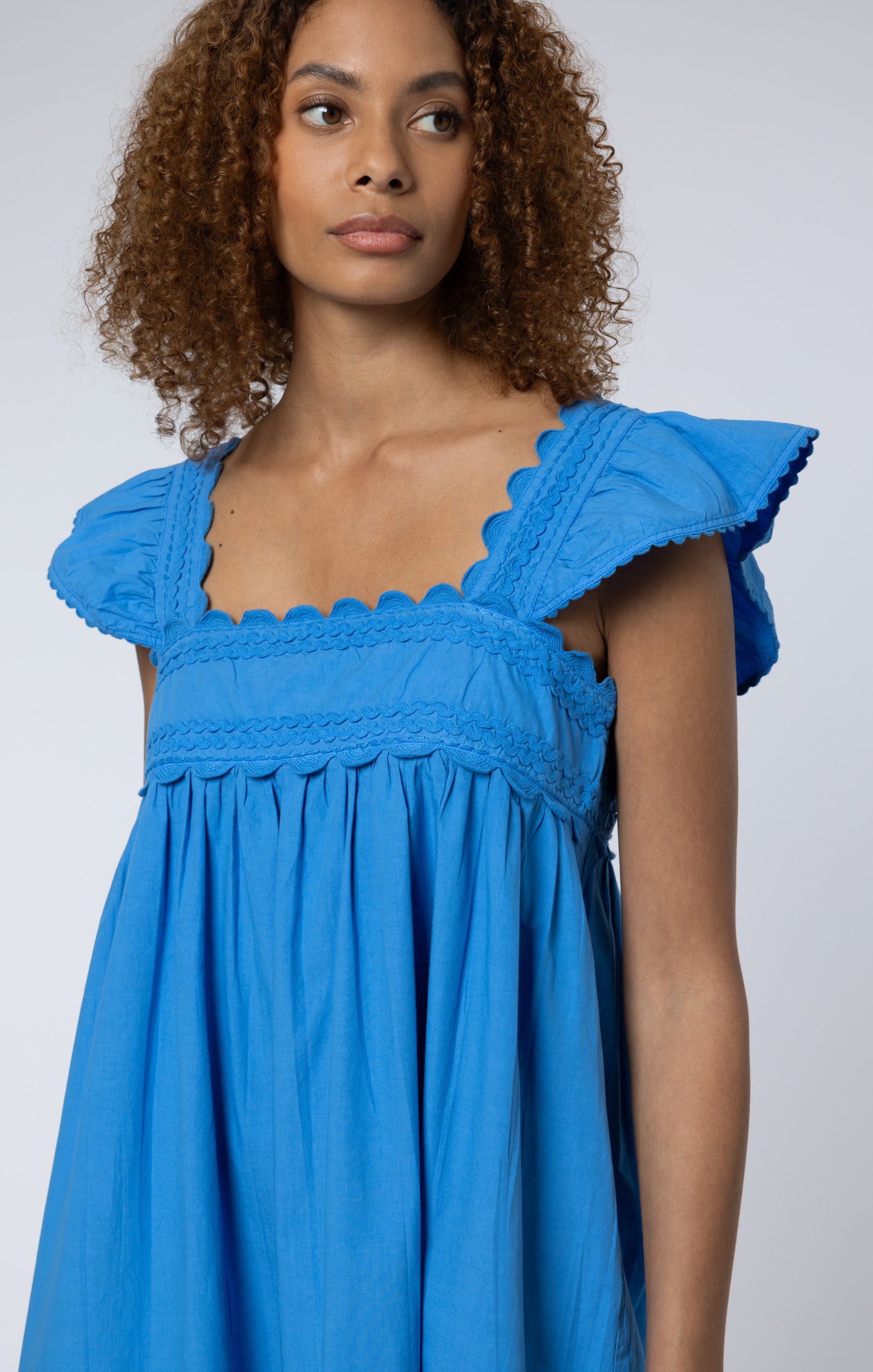 Cornflower Blue Poplin Baby Doll Dress