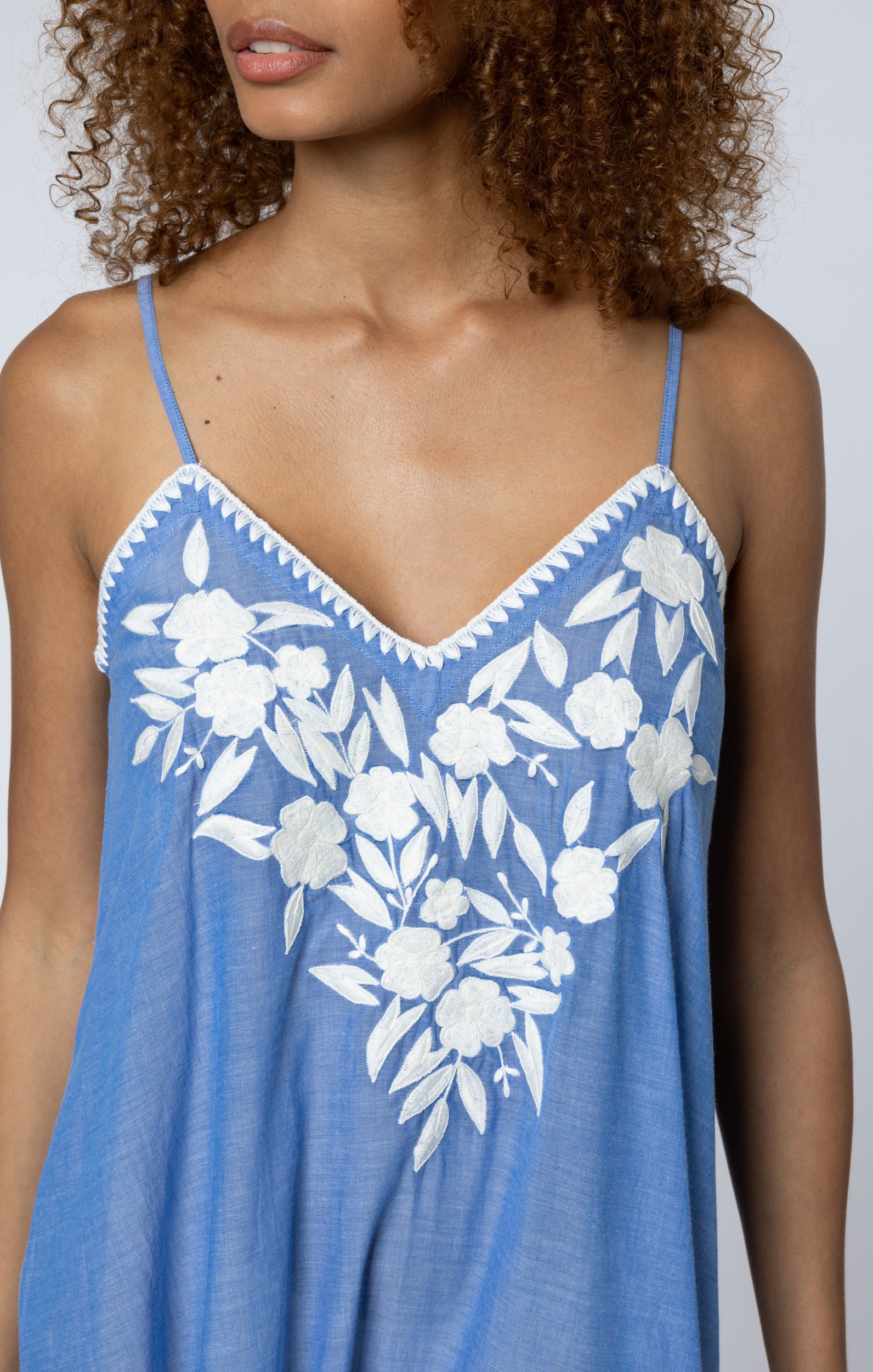 Peppermint Poplin Beach Shirt with Floral Cord Embroidery