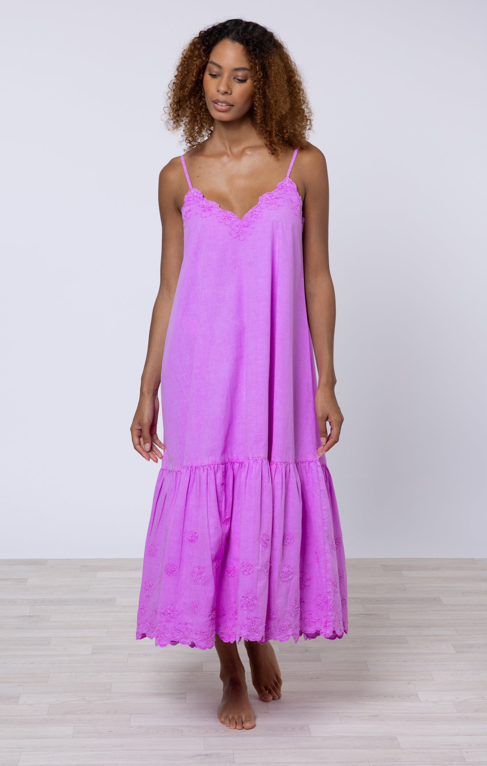 Fuchsia Poplin Beach Shirt with Floral Cord Embroidery