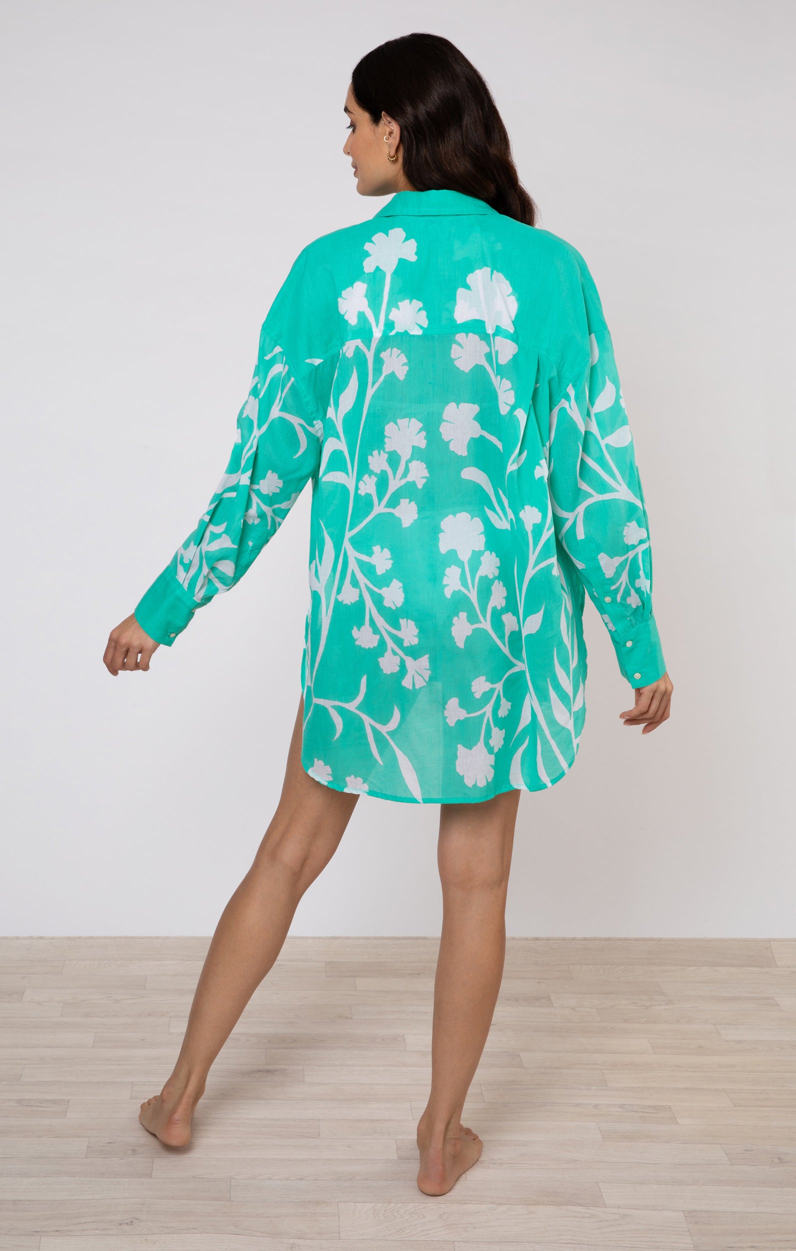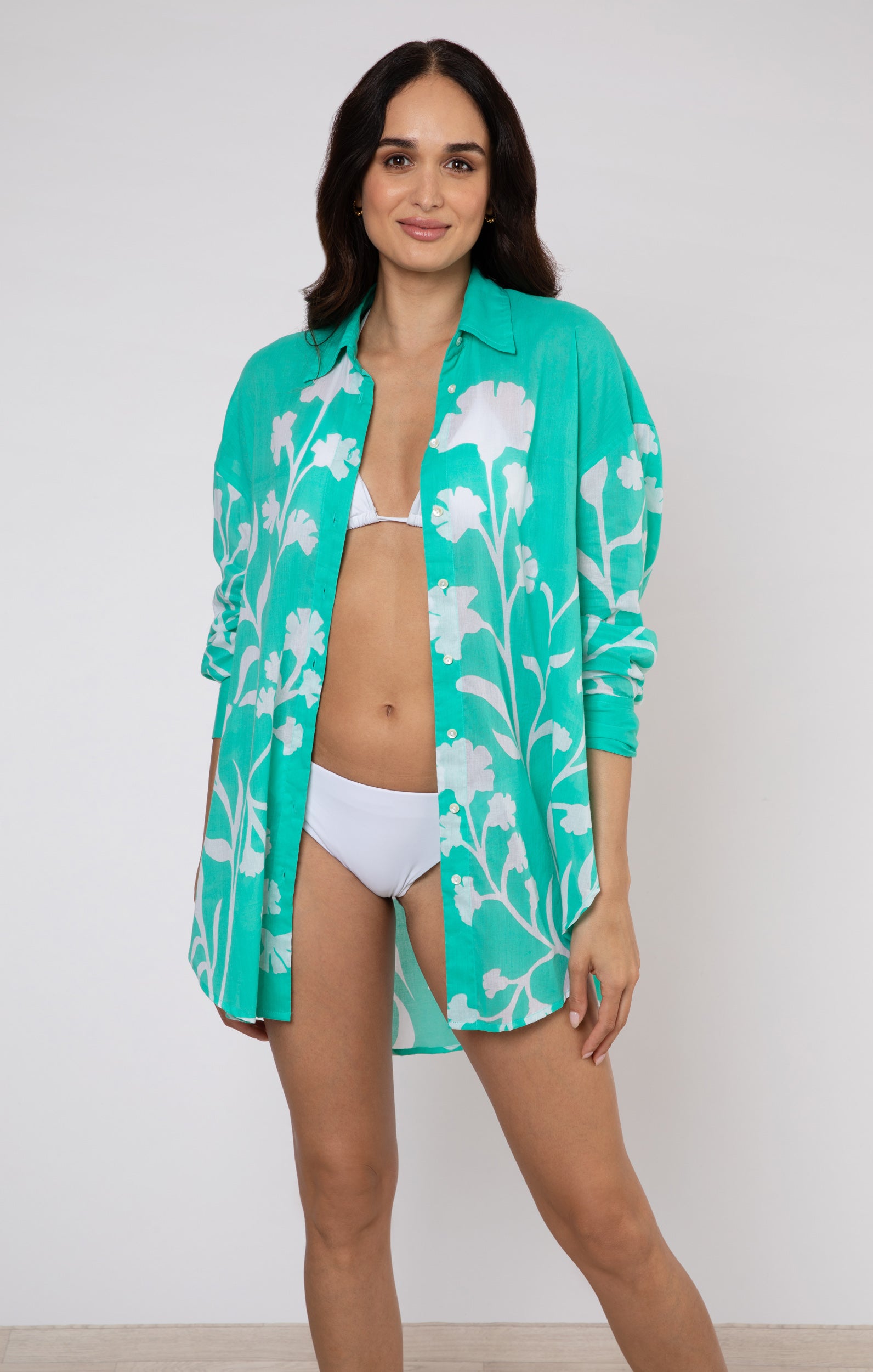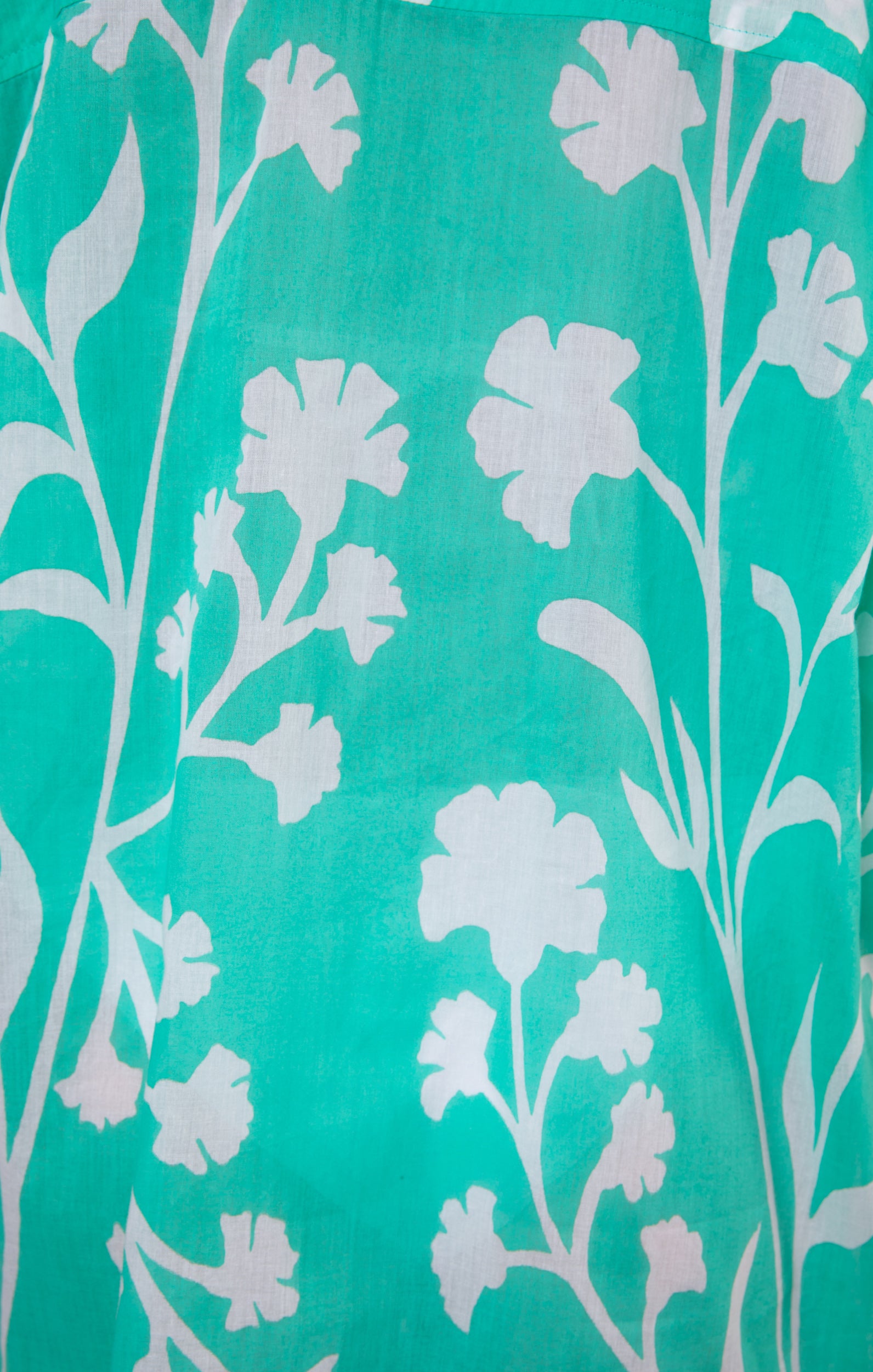 This jade shirt is a hand luggage hero. Perfect for city breaks paired with denim and trainers for a day of exploration before an afternoon by the pool with a cocktail in hand. Our majorelle print is both soft and bold with the trailing floral design.