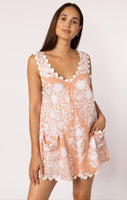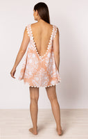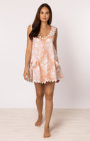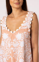 This one size wonder of a dress is lightweight and roomy. Designed for tropical adventures. Wide straps and patch pockets update this classic Juliet Dunn shape. The palladio pattern is hand printed in a wearable nude tone onto white cotton.