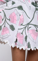 Candy Bellflower Block Print Godet Dress