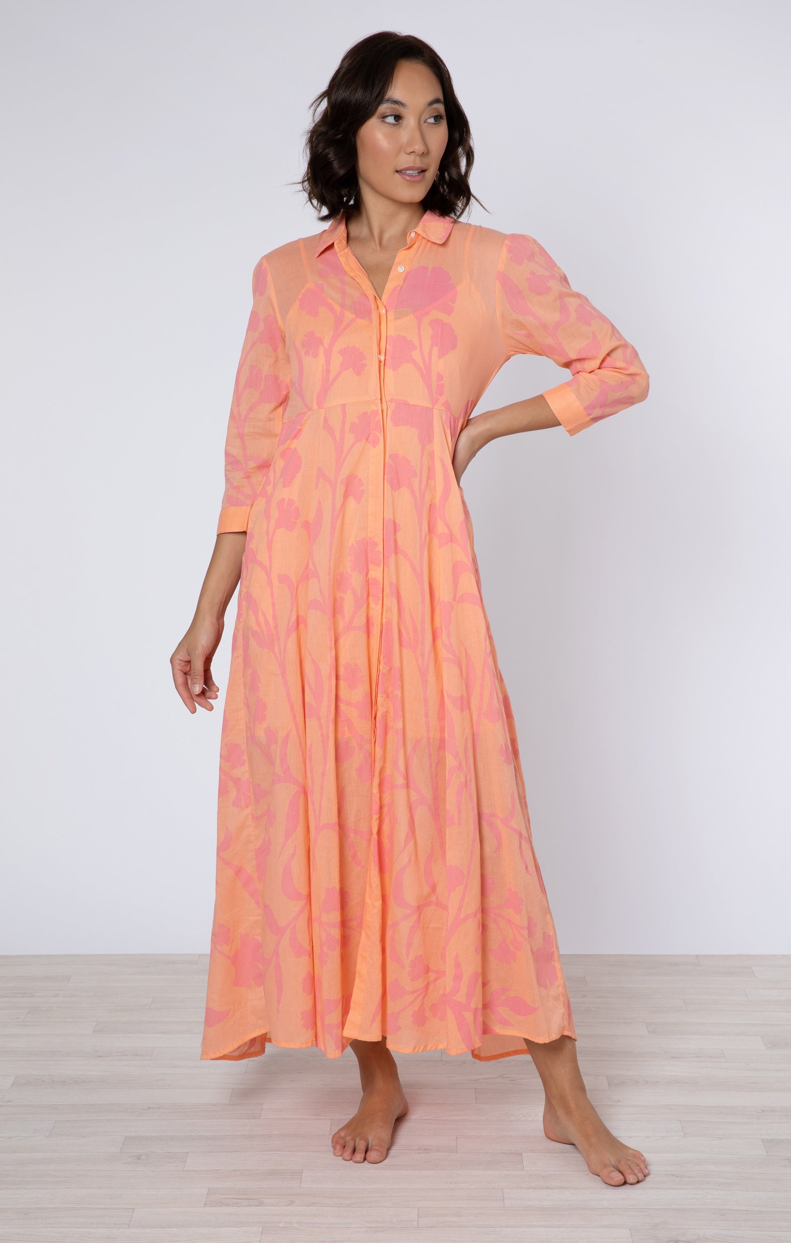 Peach & Pink Majorelle Print Maxi Shirt Dress