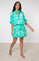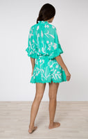 This striking majorelle pattern is a fresh take on a floral print. With a ric rac trim and an adjustable waist, this blouson dress will become your new transitional wardrobe staple.
