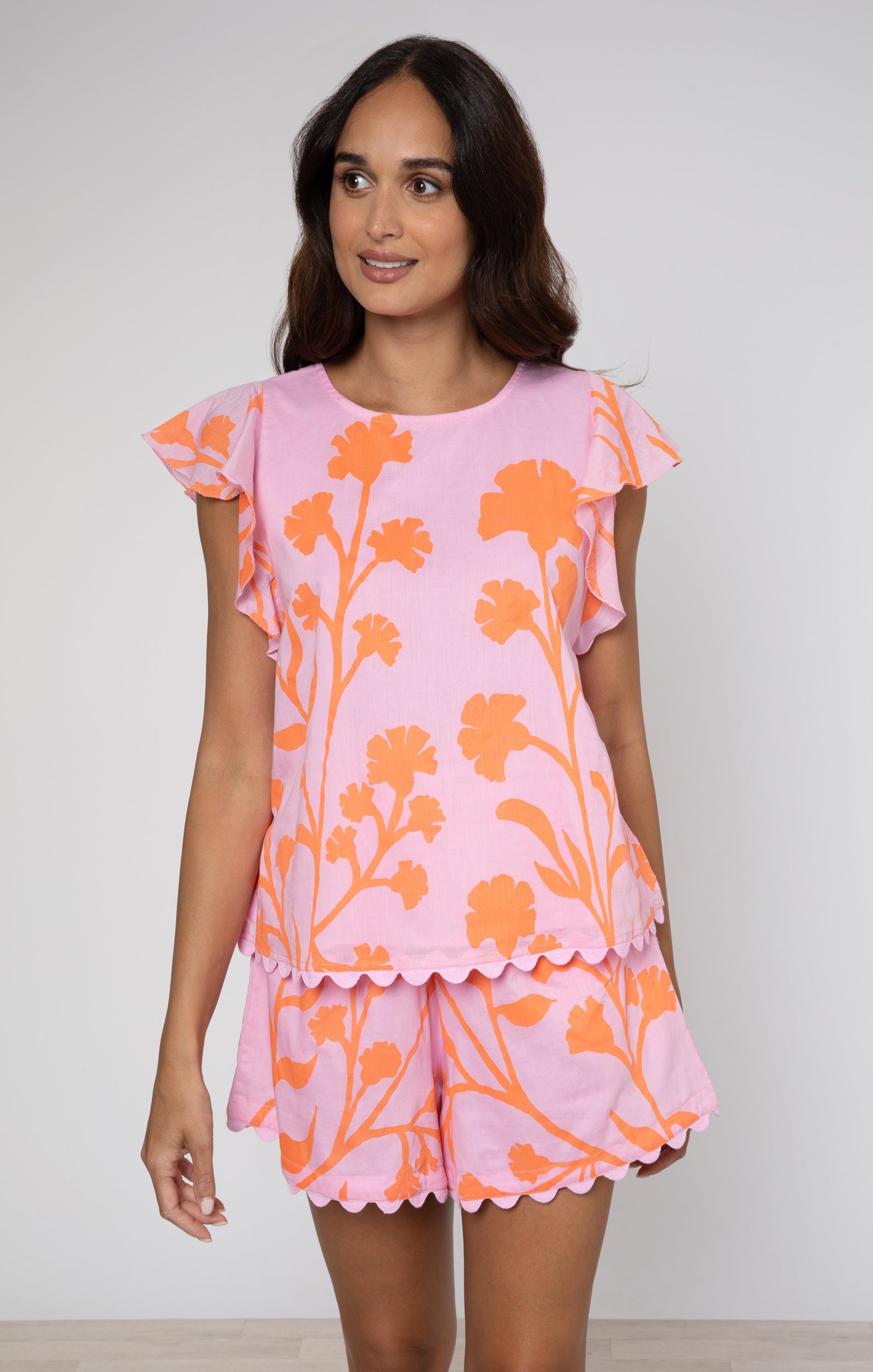 This top is a bright alternative to a plain T-shirt, perfect to wear with your favourite jeans. The delicate frill sleeve detail covers the shoulder adding a little modesty and feminine detail. Pair with our frill mini skirt for a fun alternative to a sundress.