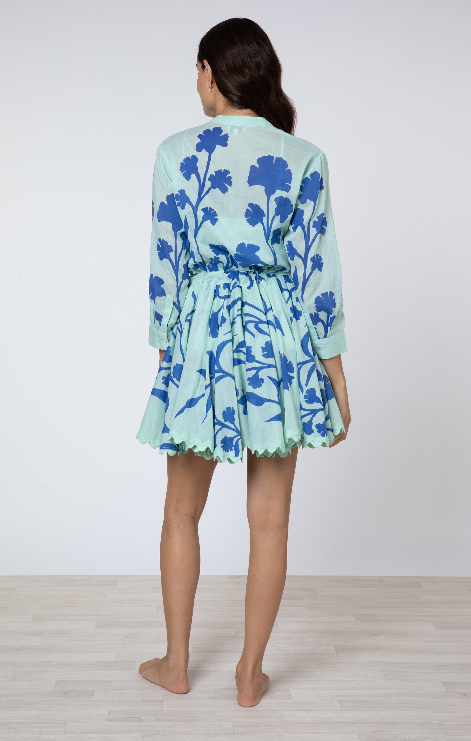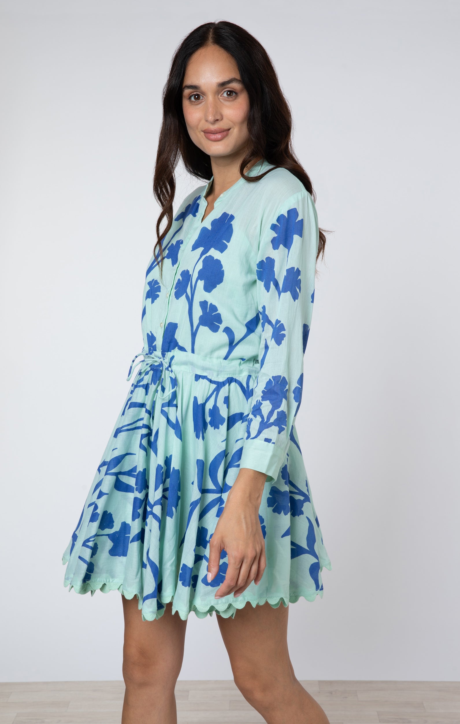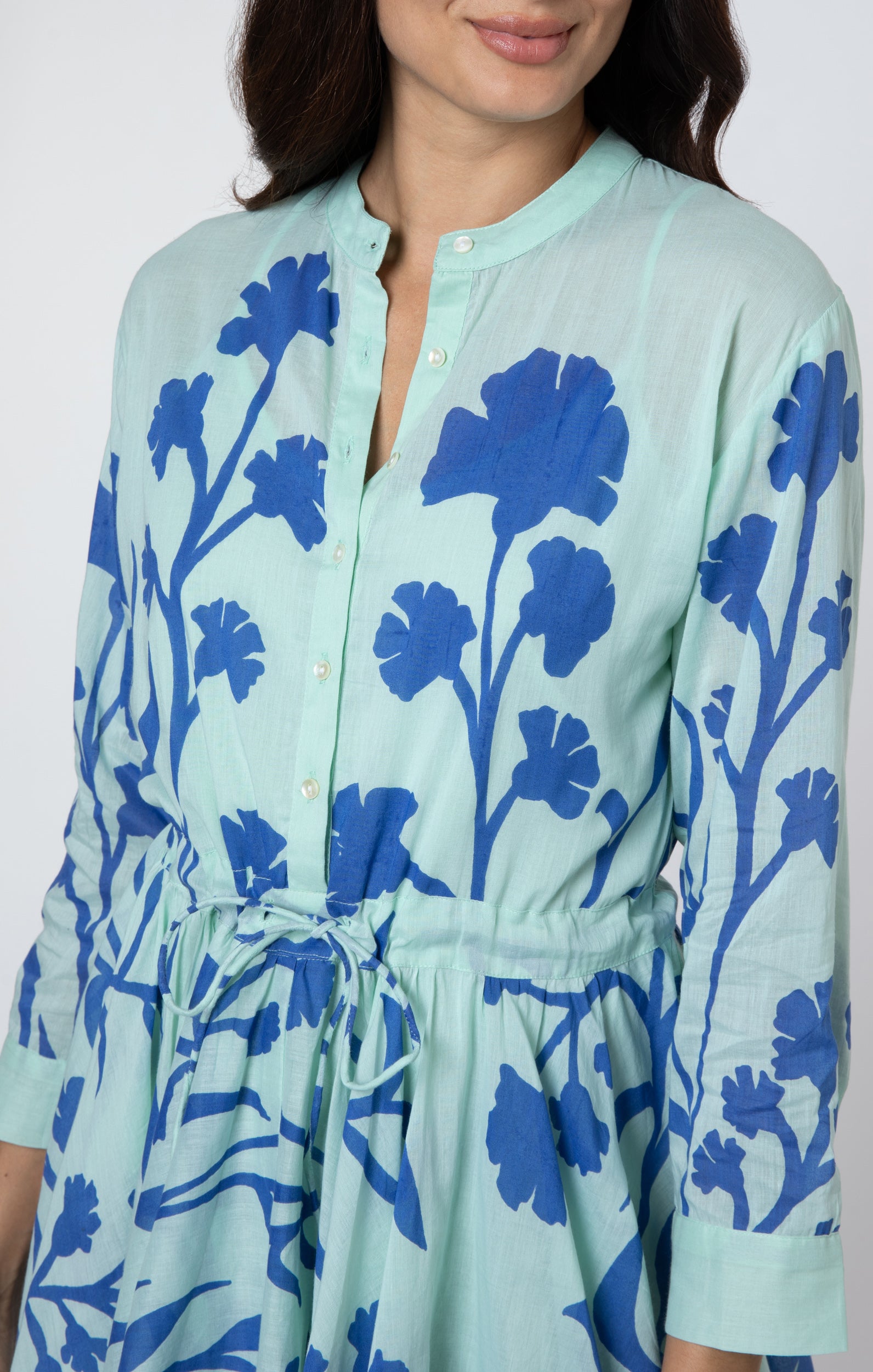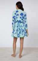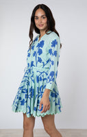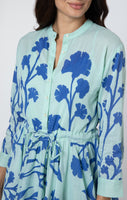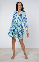 Long Sleeve Beach Dress in Aqua & Blue Majorelle Print