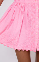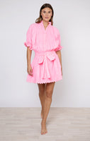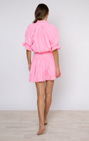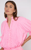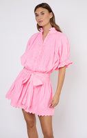 This neon blouson is a wearable shade of candy pink. The waist ties allow for an adjustable fit- wear low on the hips or tight around the waist. Style with western boots or raffia accessories for a an effortless outfit this season.
