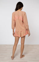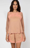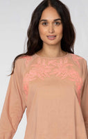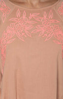 Nutmeg Batwing Top with Neon Pink Embroidery
