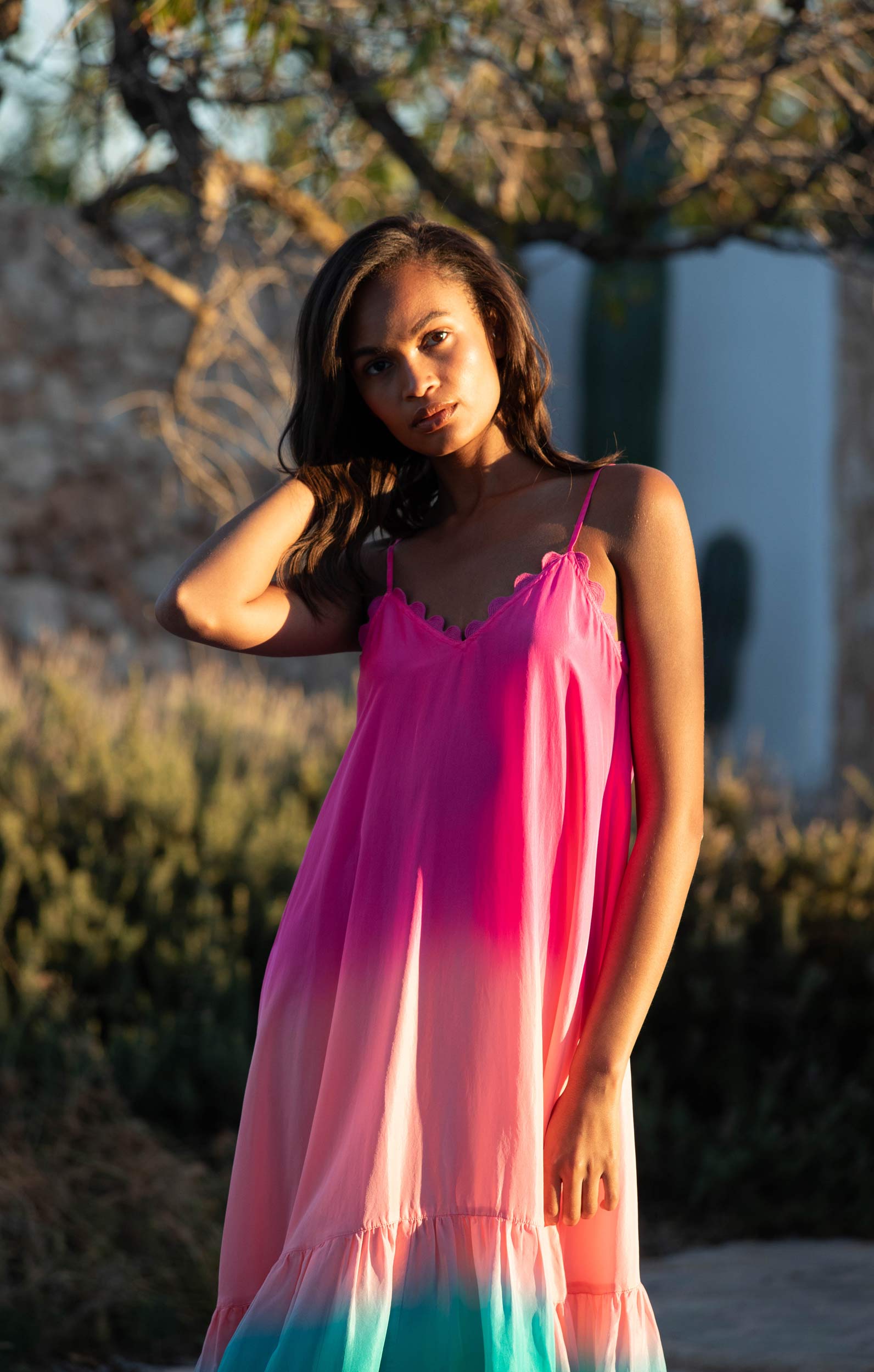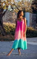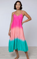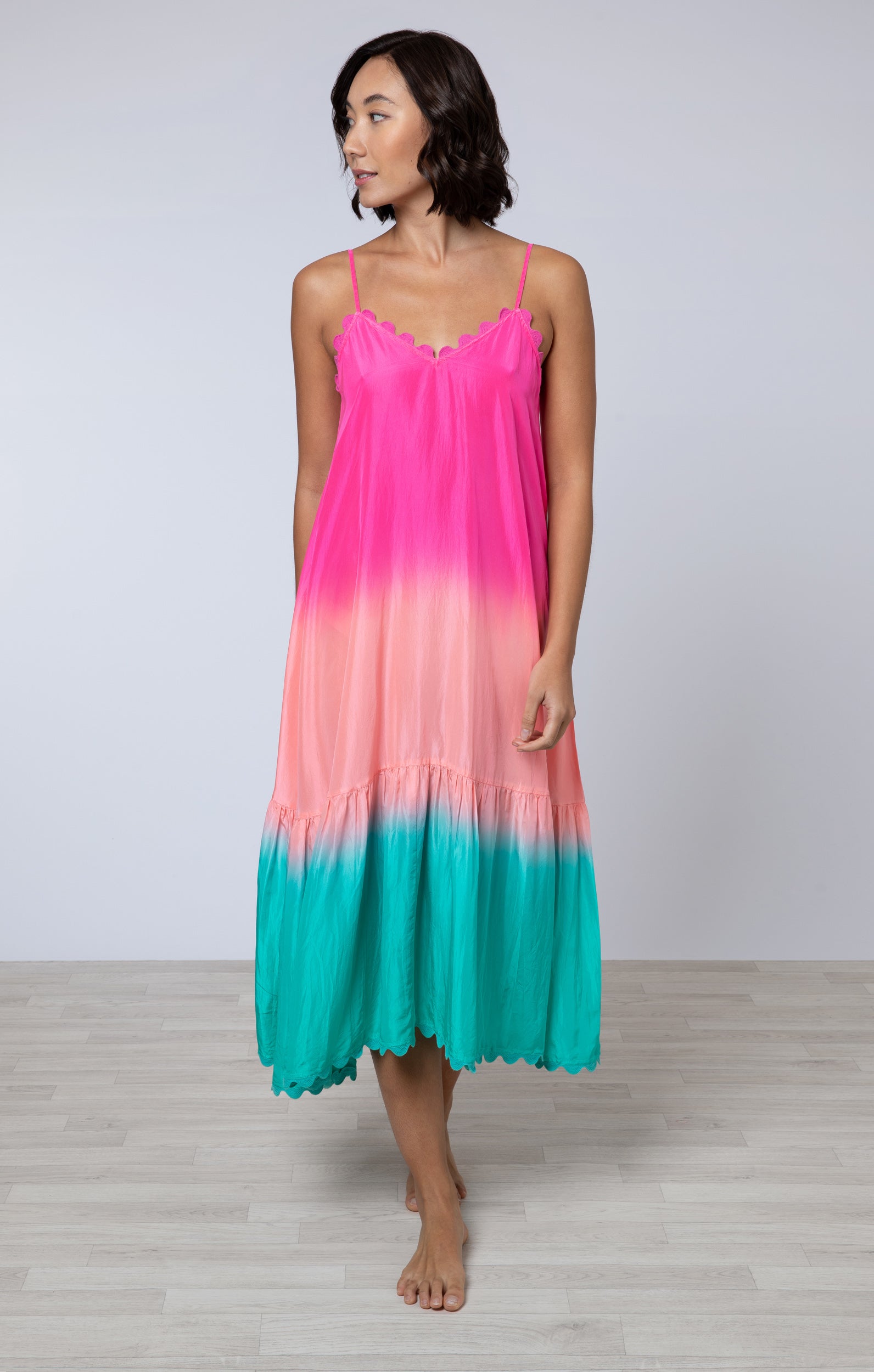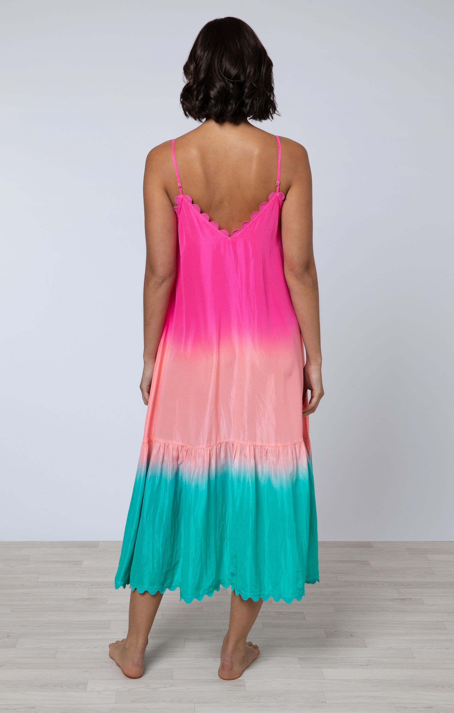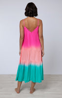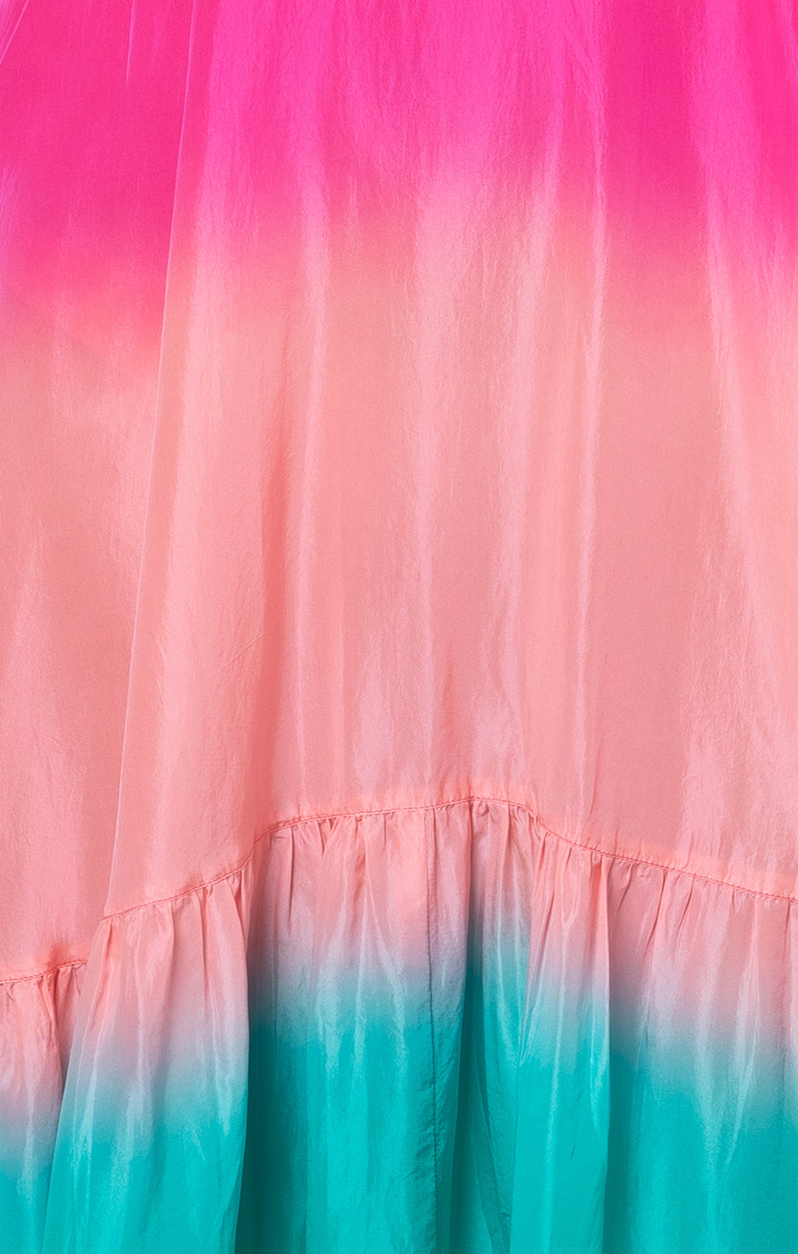 Hot pink, Coral and Jade Silk Ombre Midi Dress