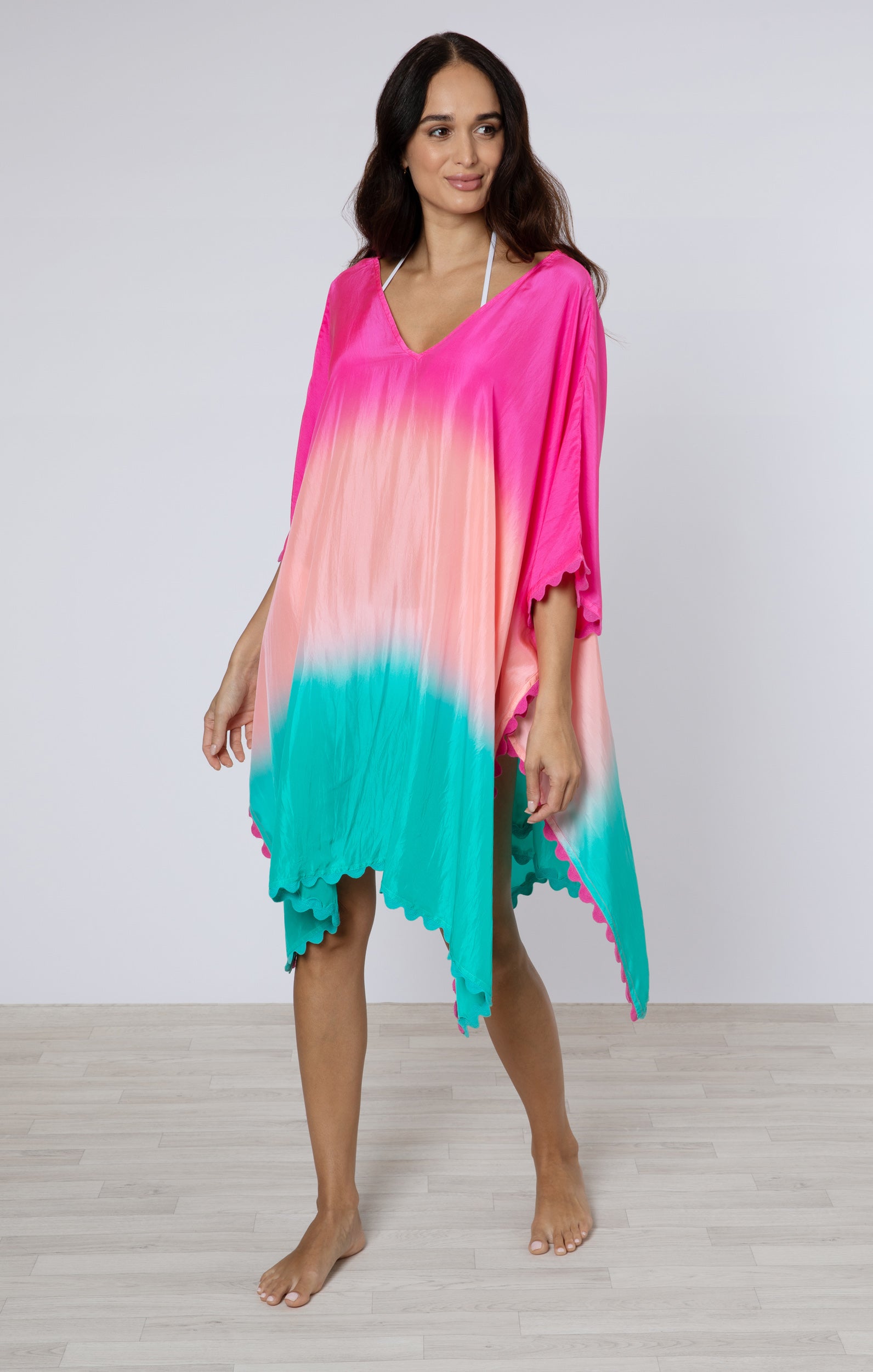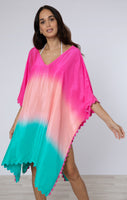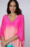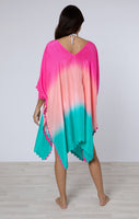 Hot Pink, Coral and Jade Silk Ombre Poncho
