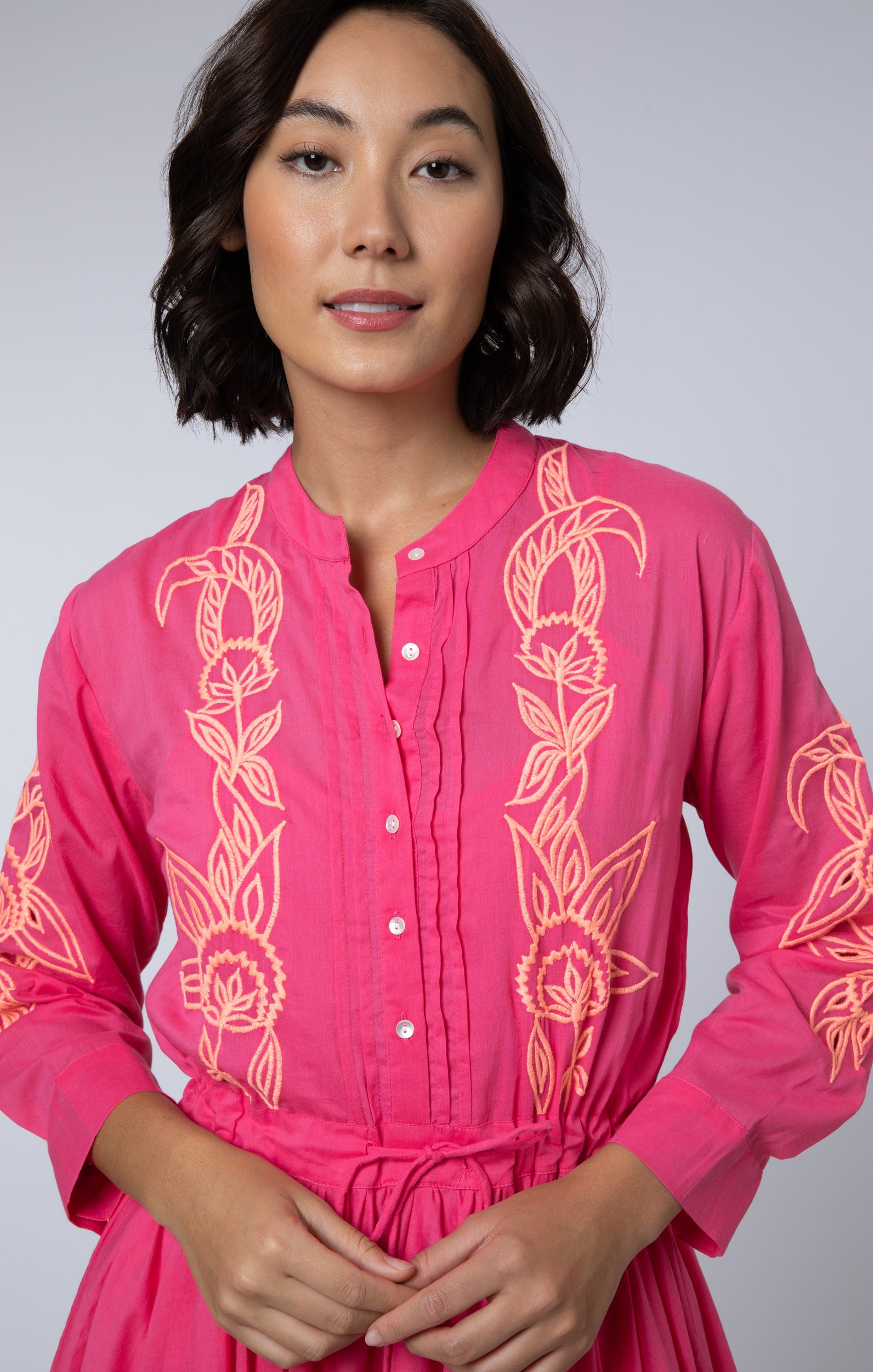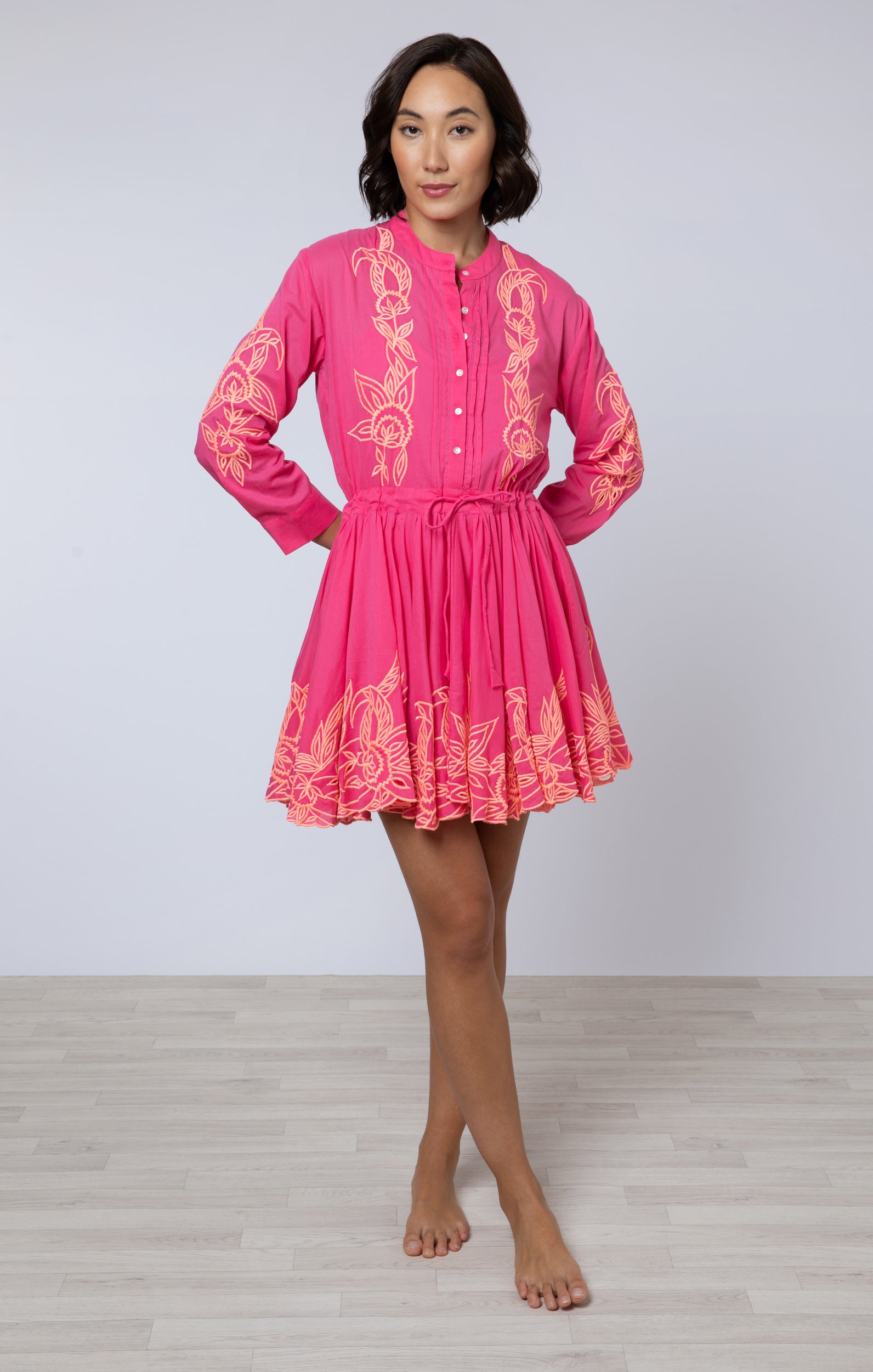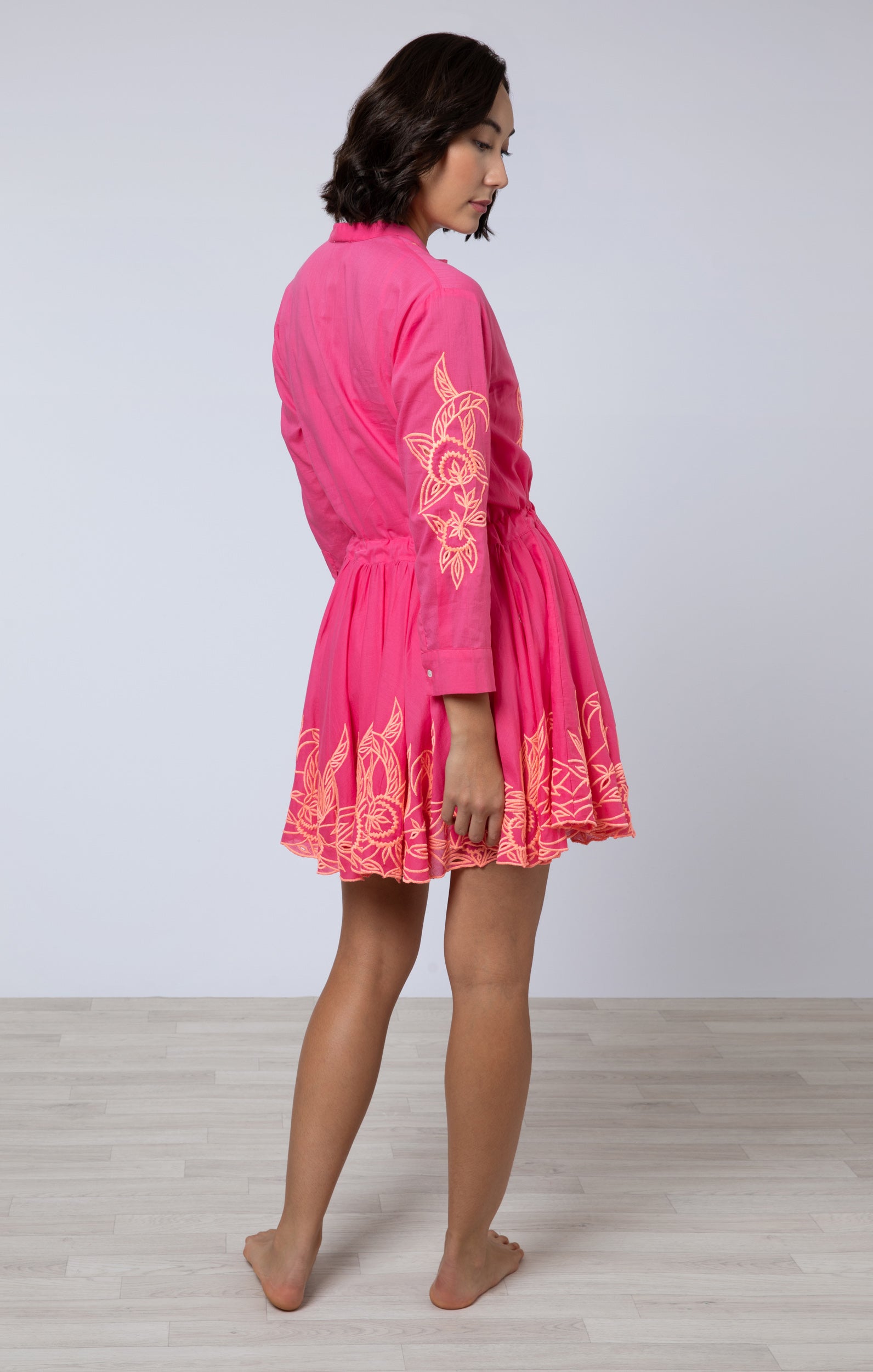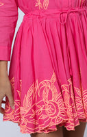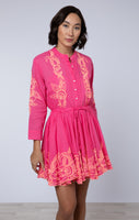 Fuchsia Long Sleeve Beach Dress with Coral Embroidery