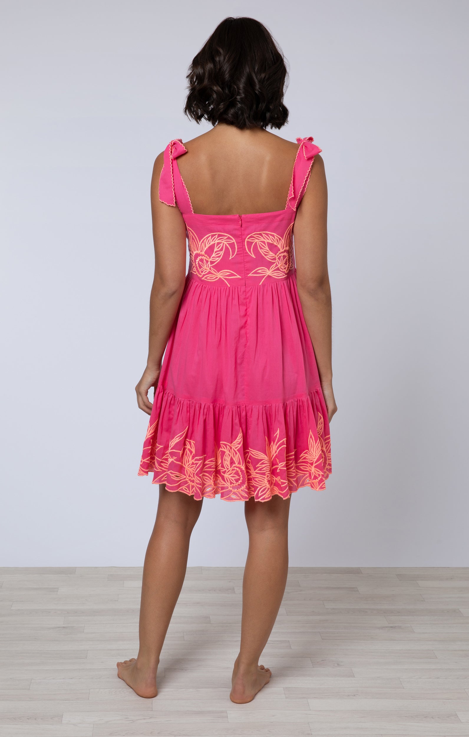 Fuchsia Sundress with Tie Shoulders and Coral Embroidery
