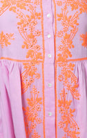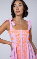 Pink Tie Shoulder Dress with Contrast Hand Embroidery