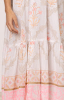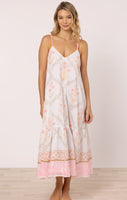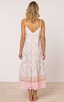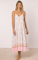 V Neck Midi Dress with Pink Grapefruit Cage Block Print