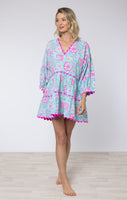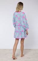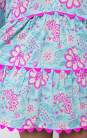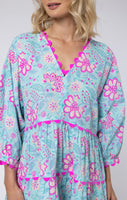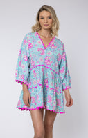 Aqua Floral Block Printed Loose Mini Dress