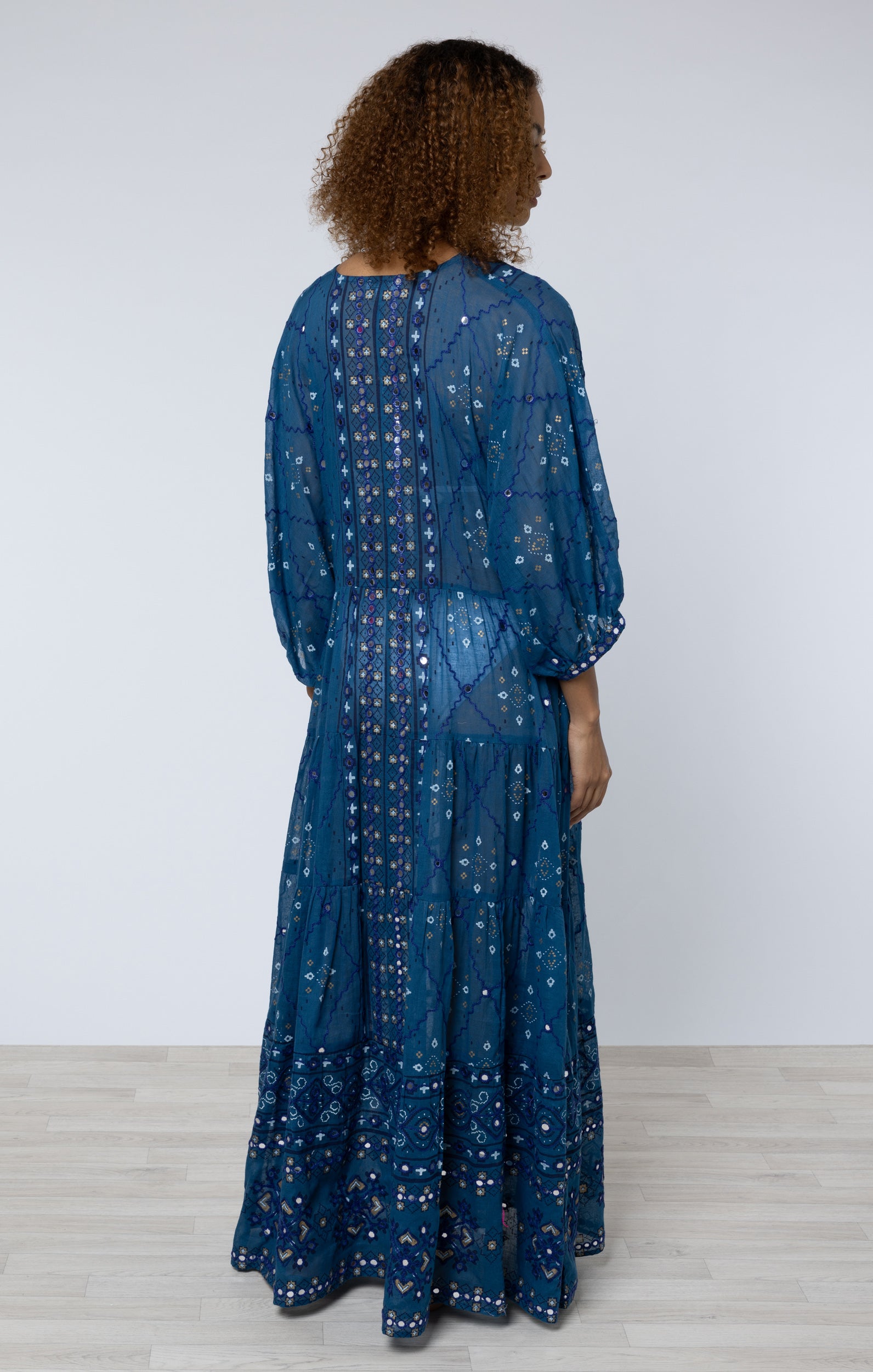 Peacock Mosaic Print V Neck Loose Maxi Dress