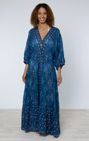 Peacock Mosaic Print V Neck Loose Maxi Dress