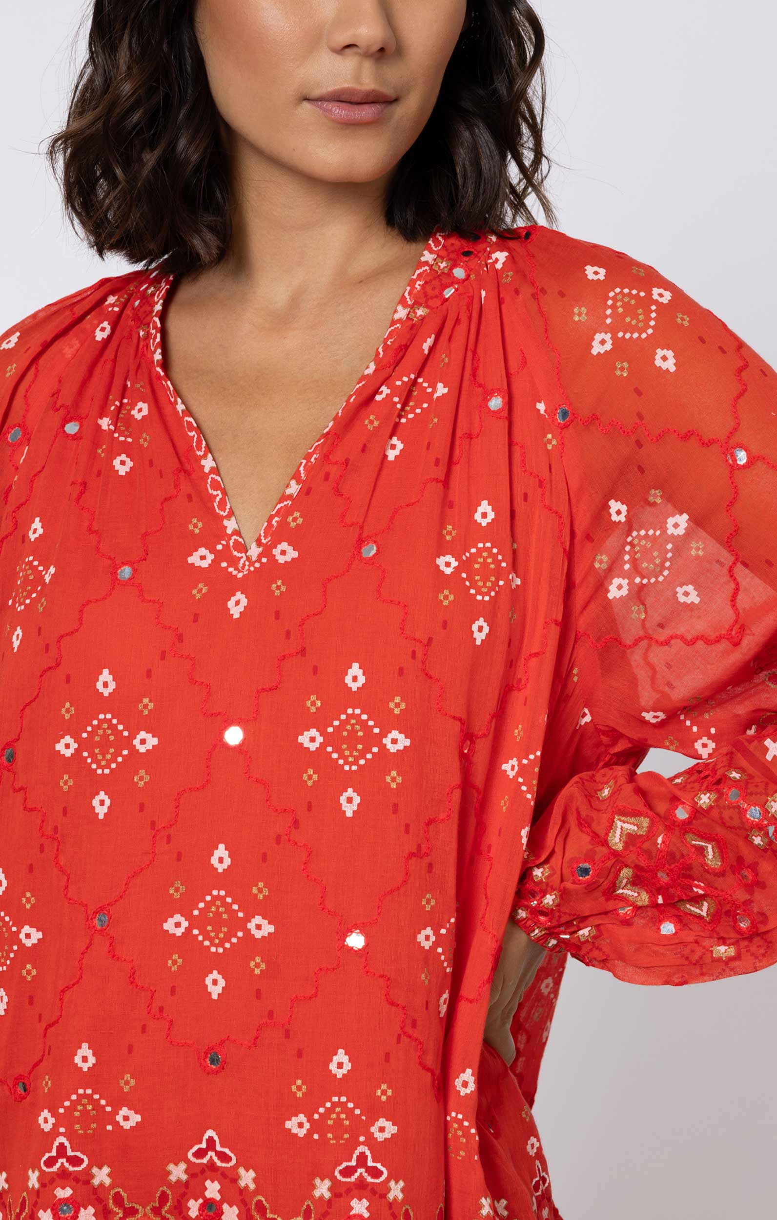 Effortlessly chic, this red mosaic dress is the perfect addition to your wardrobe