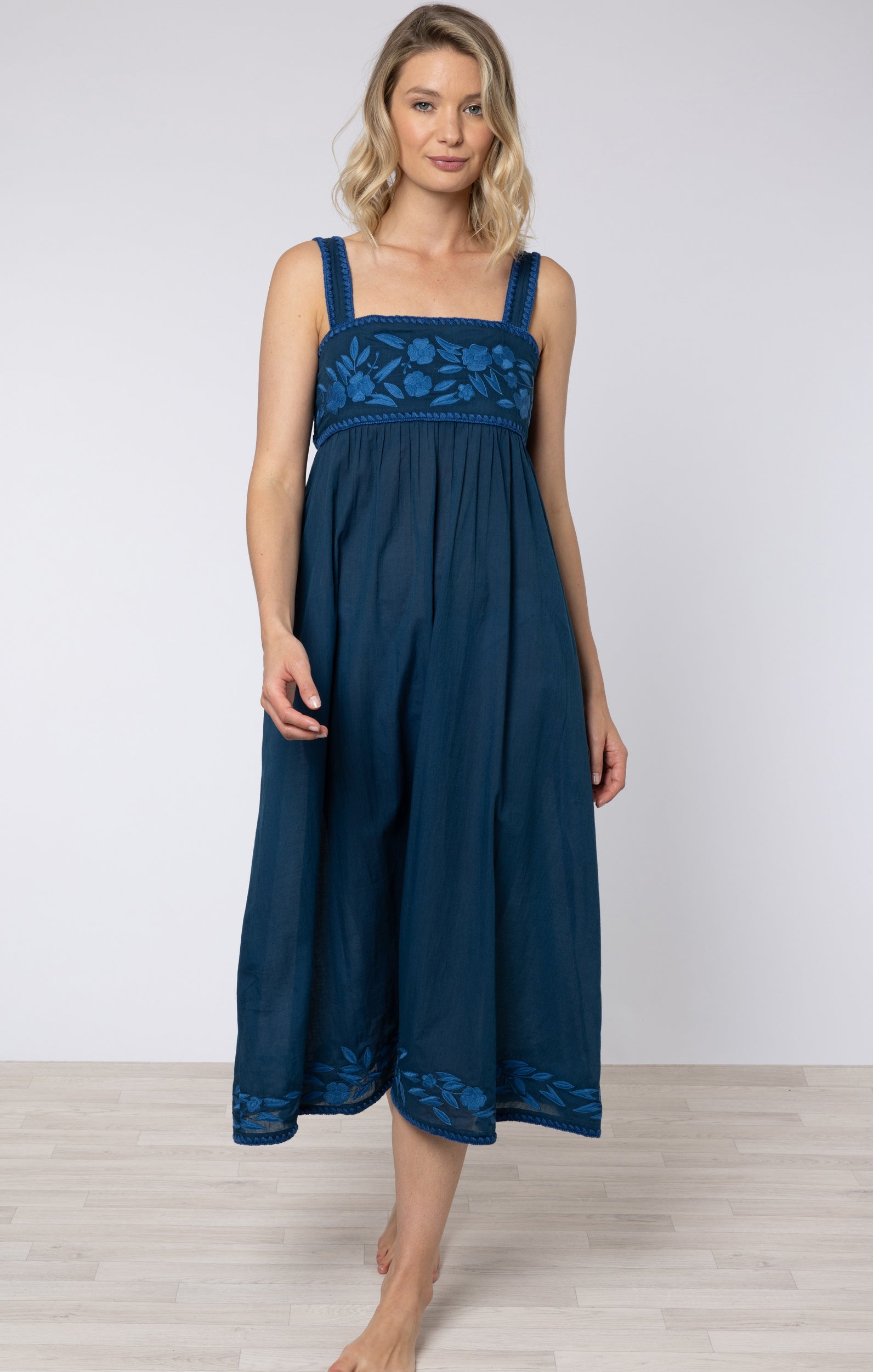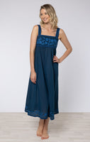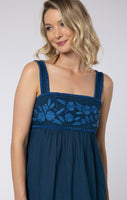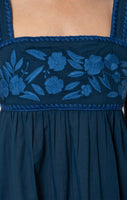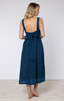 Midnight Blue Chambray Tie Back Dress with Embroidery