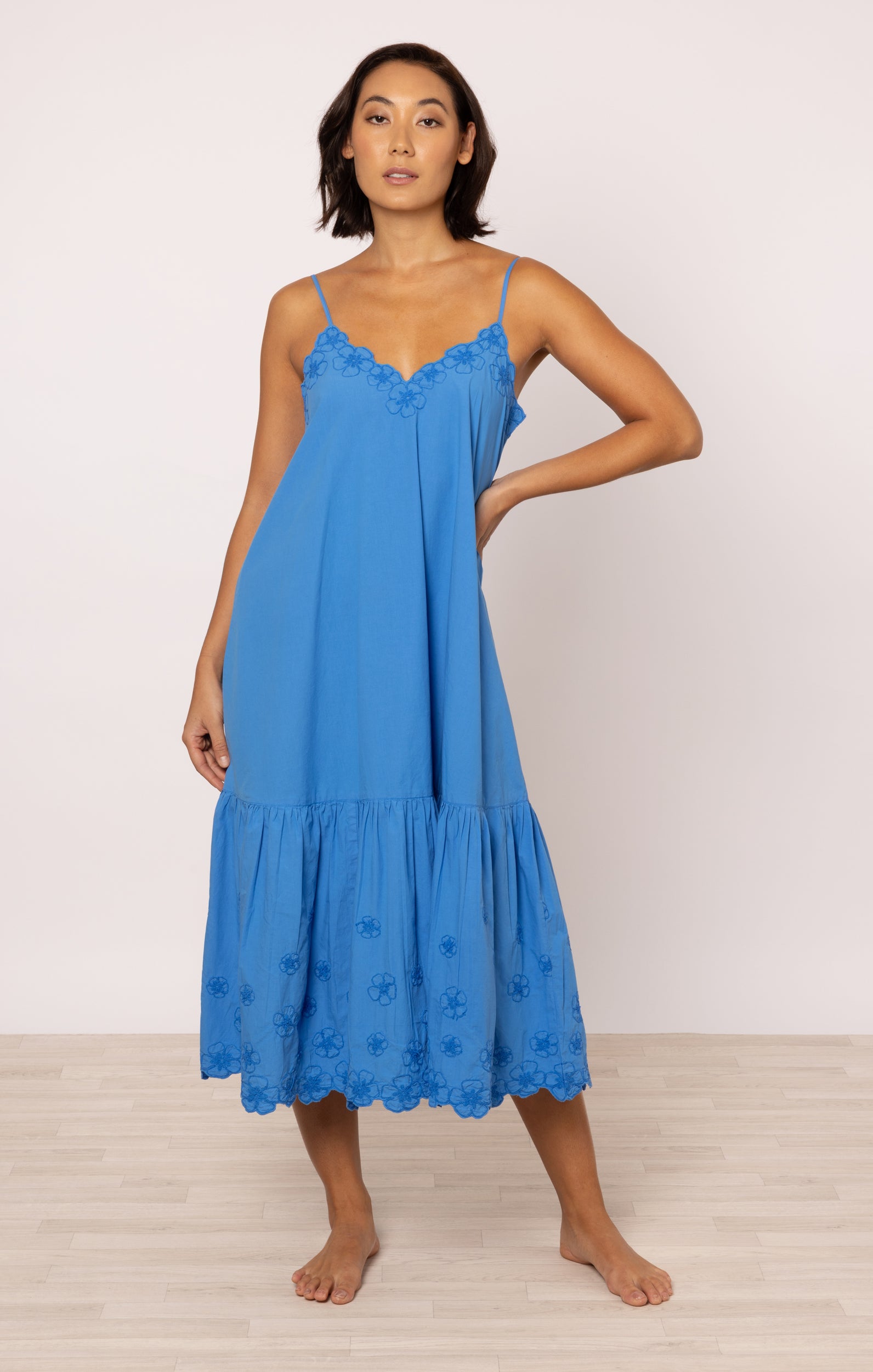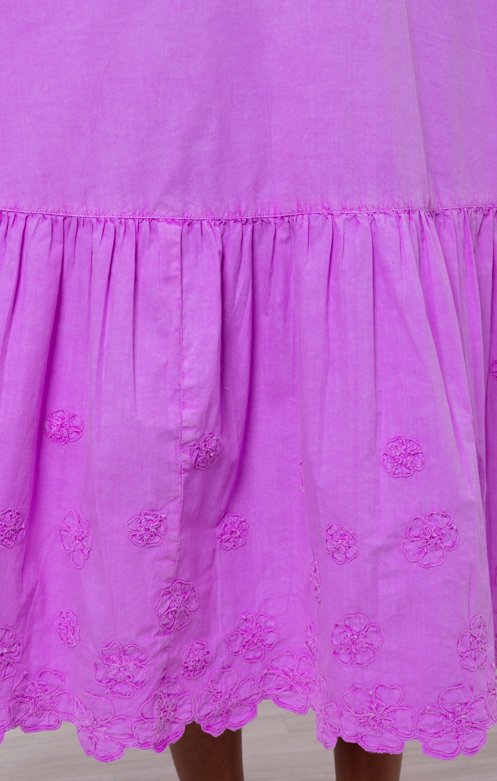 V Neck Midi Dress in Foxglove Floral Cord Embroidery