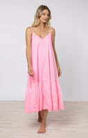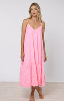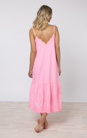 The spaghetti straps on this V-neck Midi Dress are fully adjustable, creating a flattering dip at both front and back of this dress which can be as deep as you choose. The bold colour adds a pop of fun to the delicate floral cord embroidery and scalloped detailing.