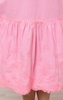 Pink Grapefruit V Neck Midi Dress in Floral Cord Embroidery