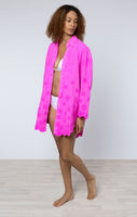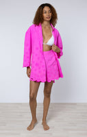 If you're looking for an instant outfit our shirt and shorts set is it. Perfect for city adventures and beach days, the bright fuchsia tone and fun floral cord embroidery means this set becomes an instant outfit. The poplin fabric means this shirt has structure (you may find you want to size down if you prefer a more fitted look)