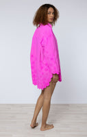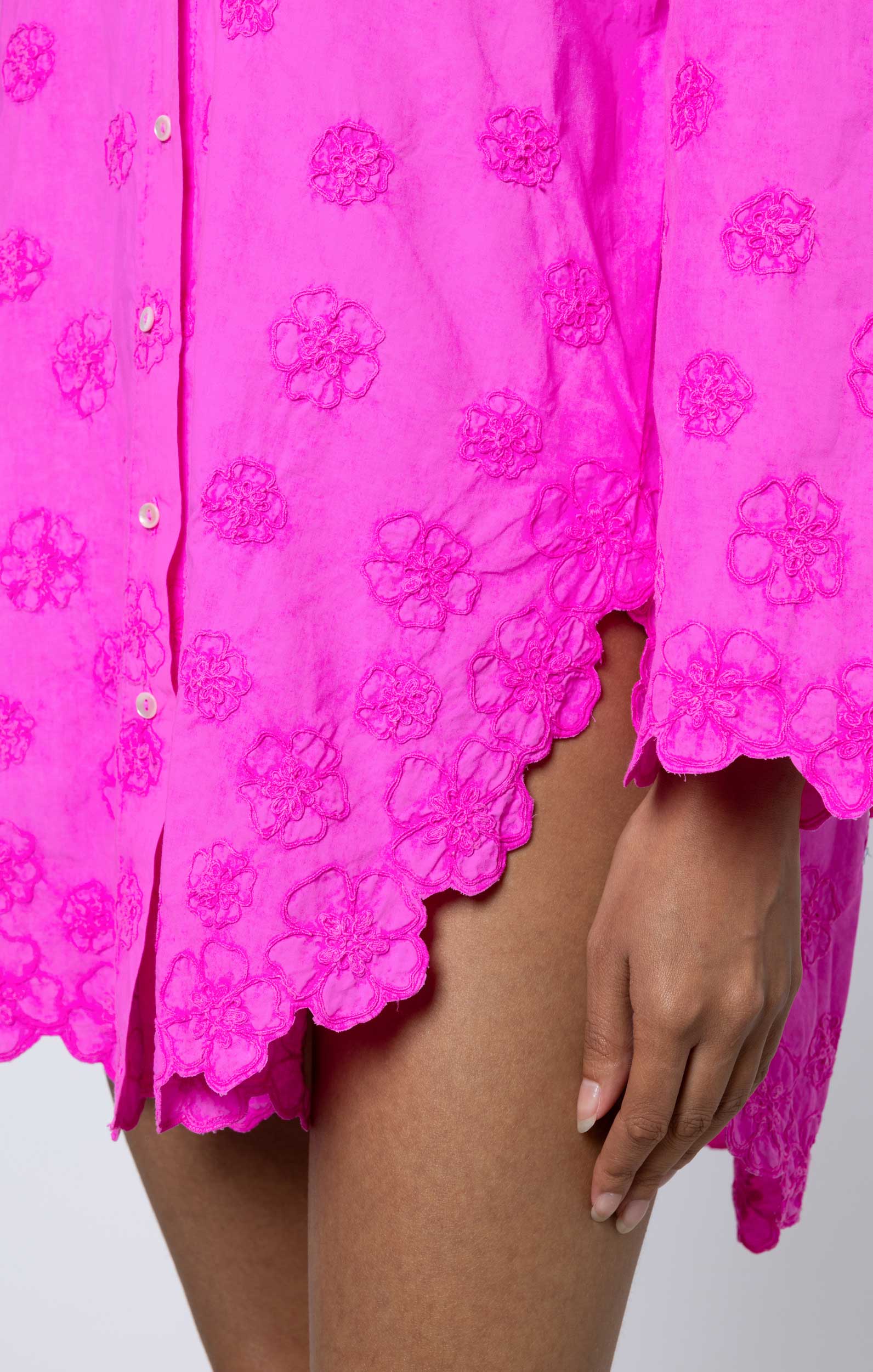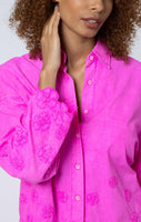 Fuchsia Poplin Beach Shirt with Floral Cord Embroidery
