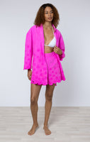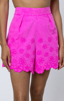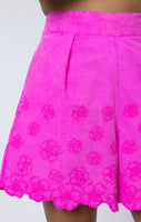 Fuchsia Poplin City Shorts with Floral Cord Embroidery