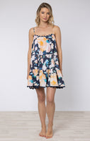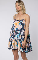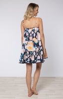 Midnight Peony Print Wave Mini Dress