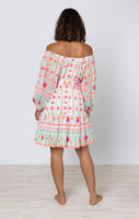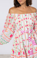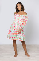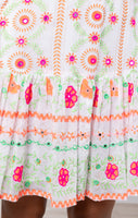 White Mexican Print Boho Dress with Orange Embroidery