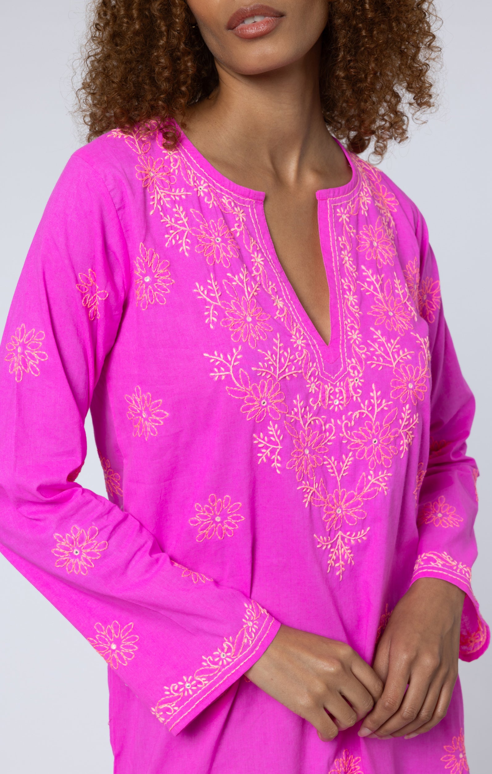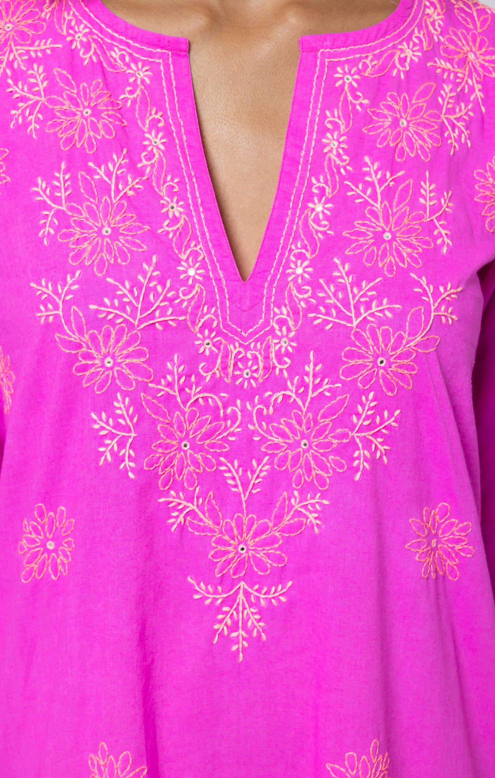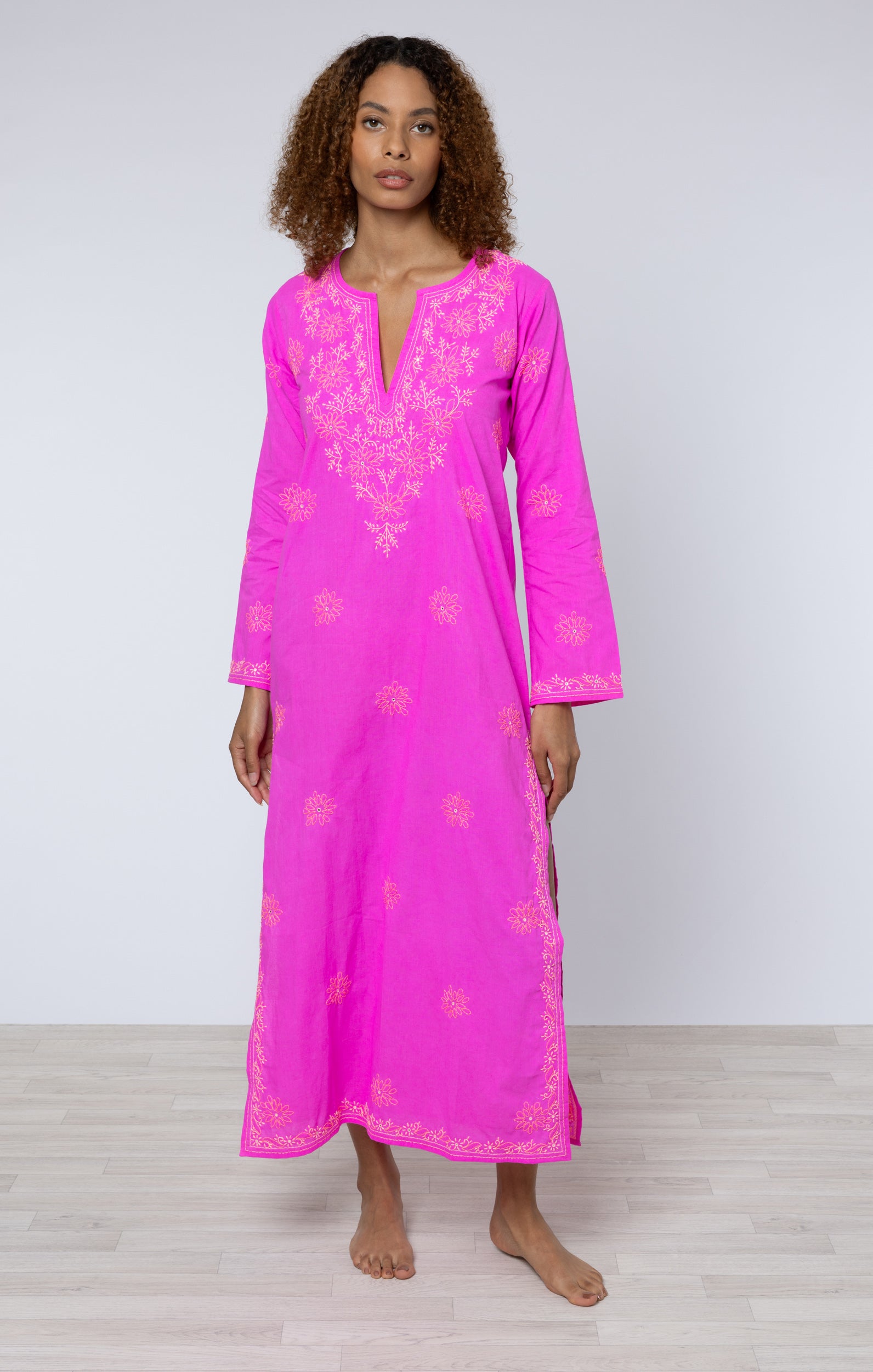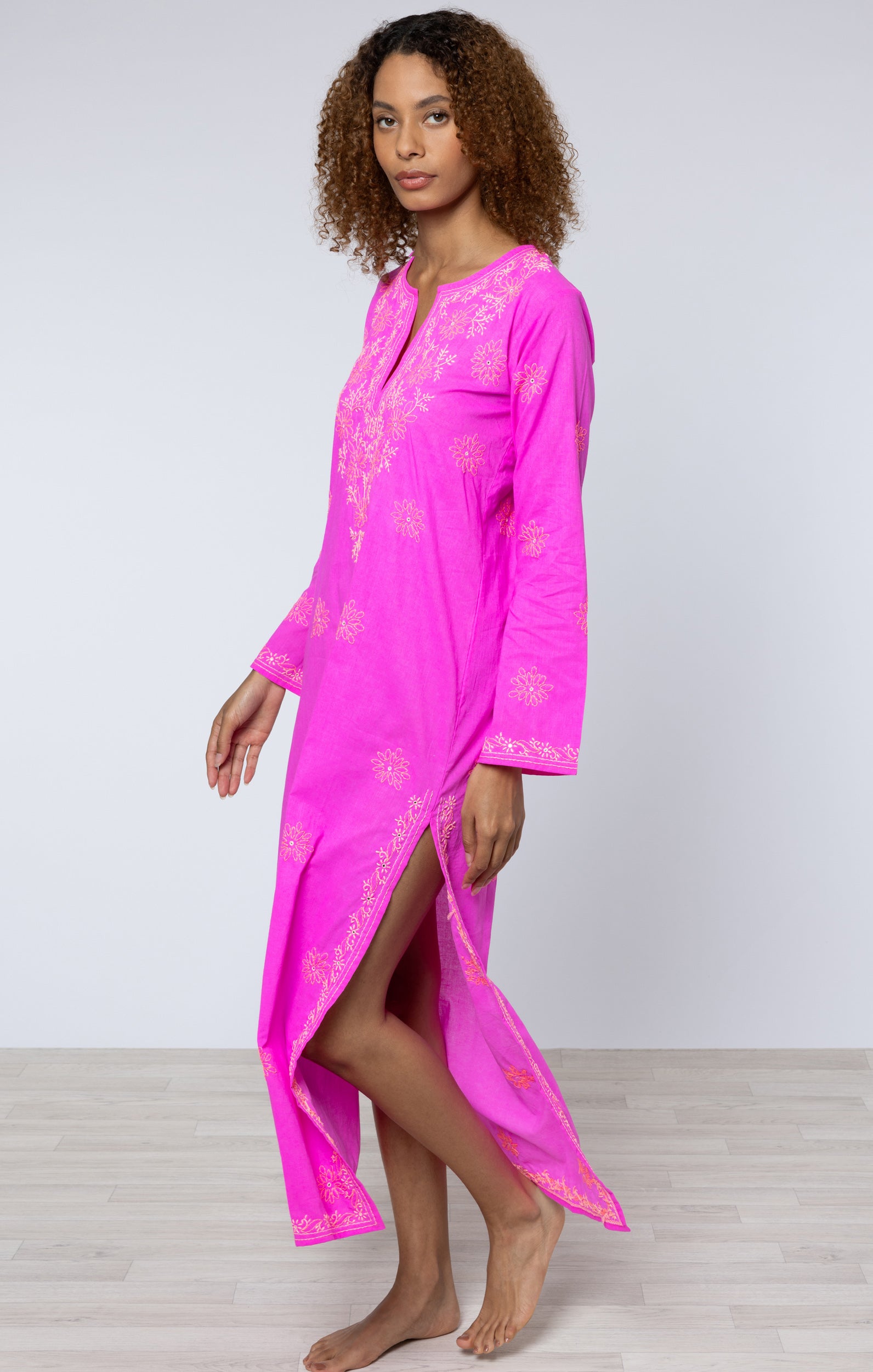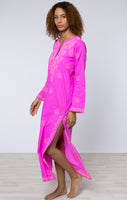 Fuchsia Maxi Kaftan with Hand Embroidery