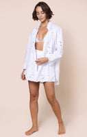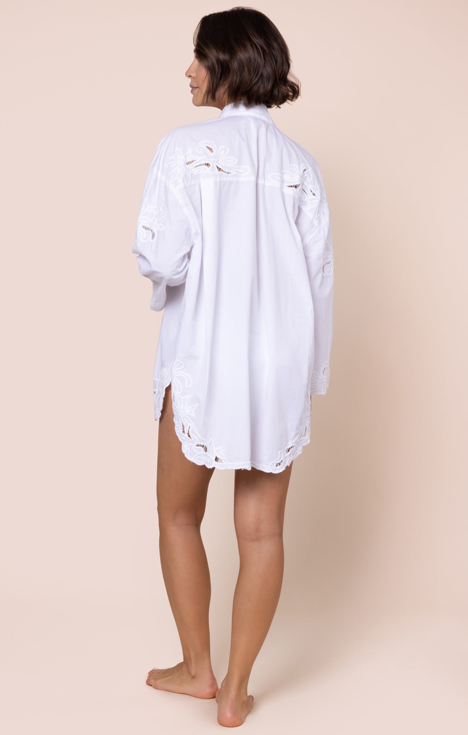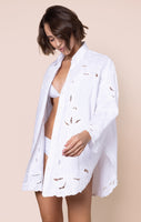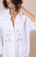 Looking for the perfect beach cover-up? This White Cut Out Embroidery Beach Shirt has got you covered (literally).