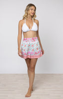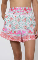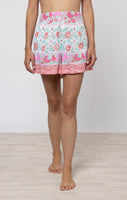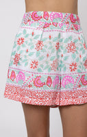 A must-have pair of summer shorts featuring a vibrant block print pattern