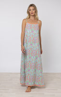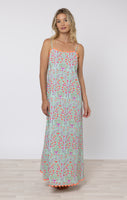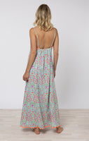 Square Neck Maxi Dress in Aqua Ditzy Floral Print