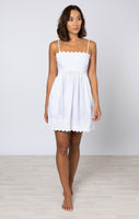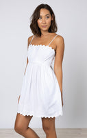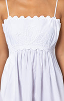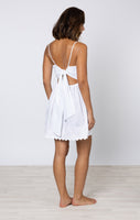 White Poplin Tie Back Mini Dress with Ric Rac Embroidery