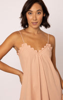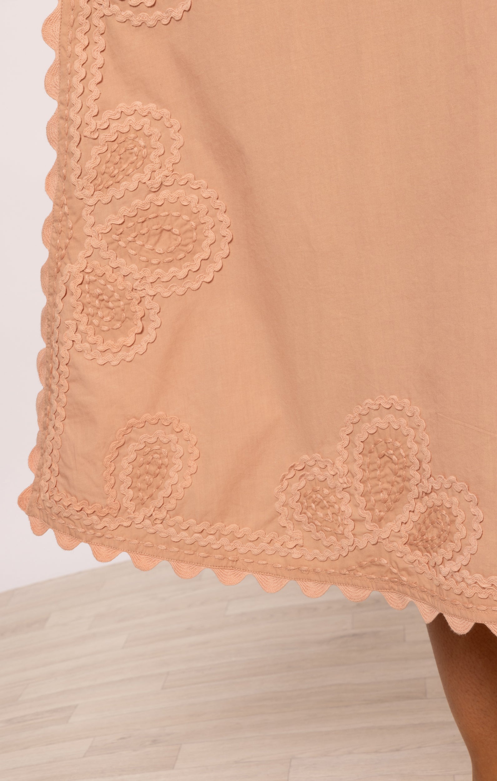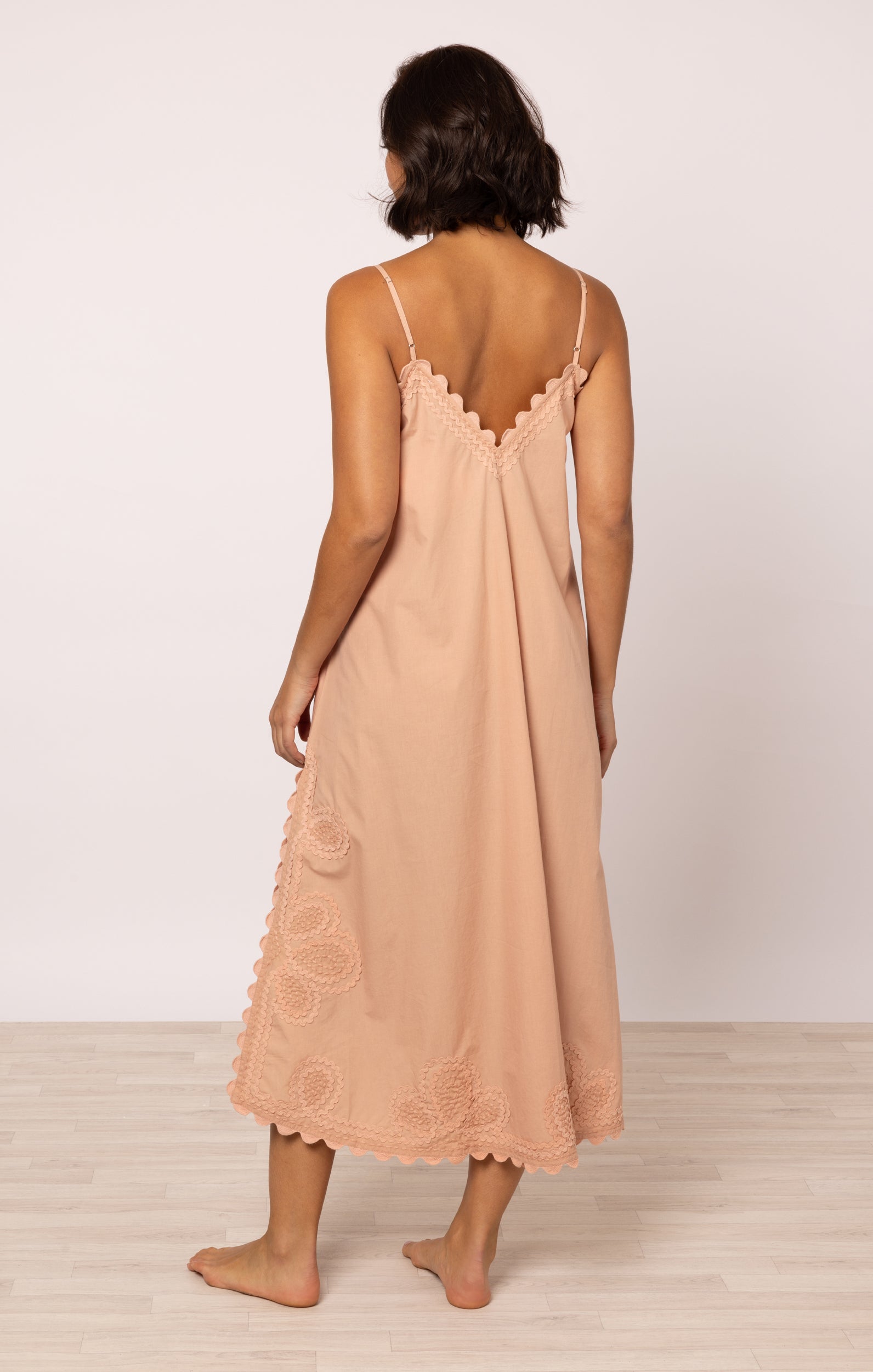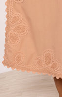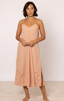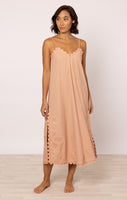 Poplin Midi Slip Dress in Bronze with Ric Rac Embroidery
