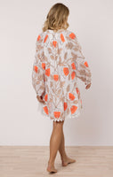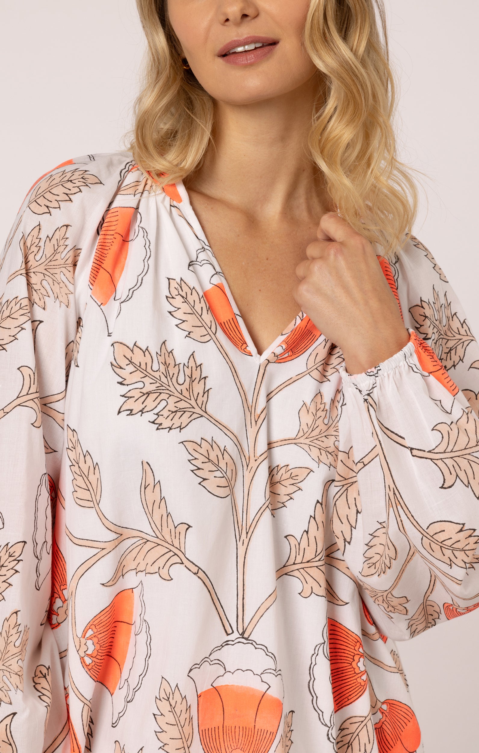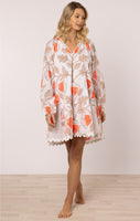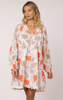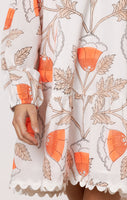 Raglan Sleeve Frill Dress in Scarlet Bellflower Block Print