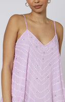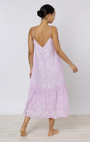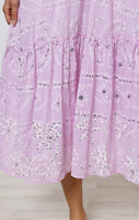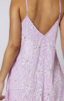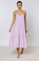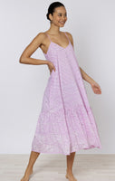 Peony Pink Lily Print V-Neck Midi Dress with Sequin Embroidery