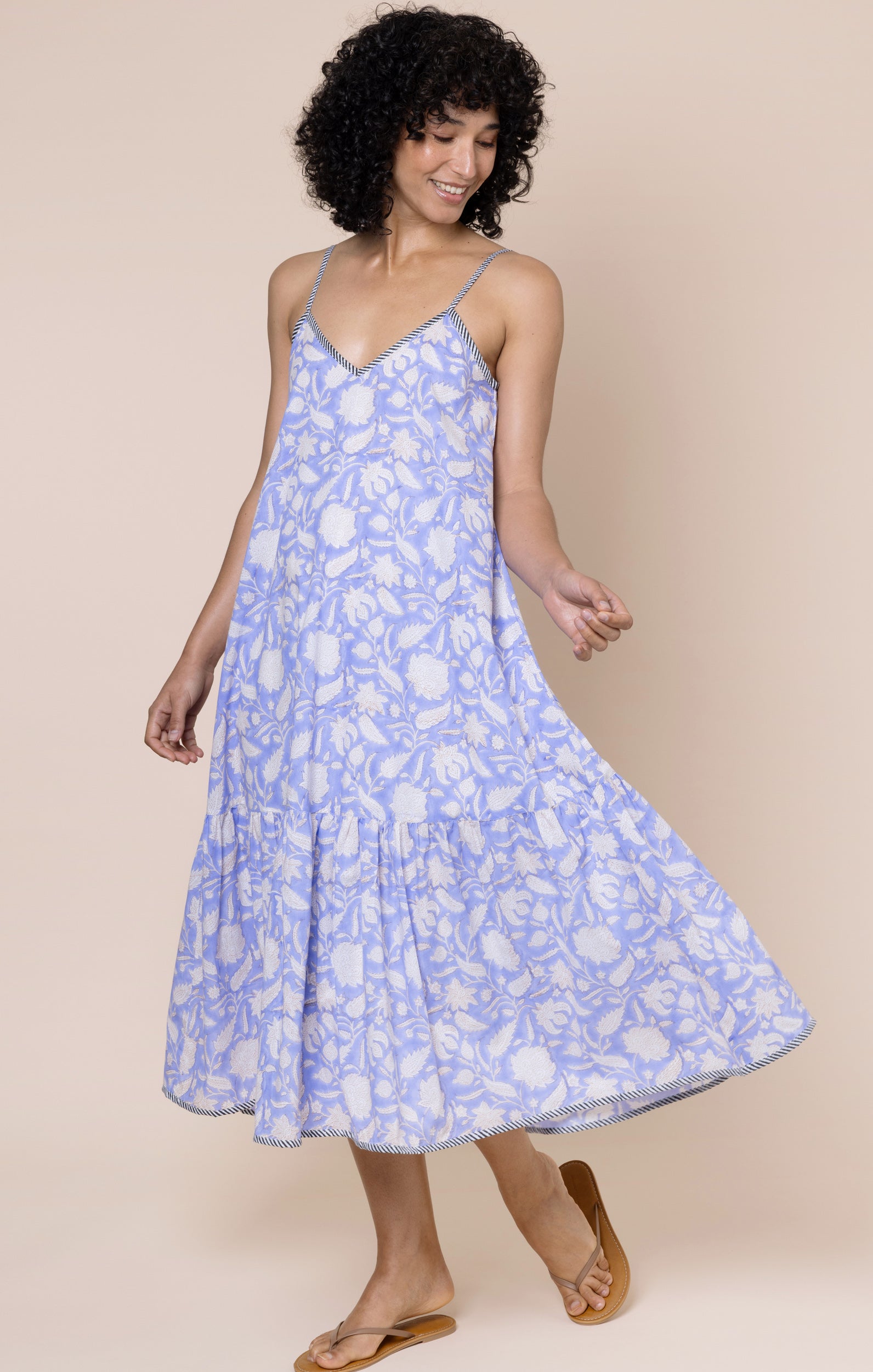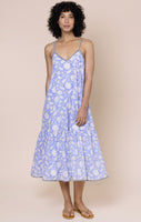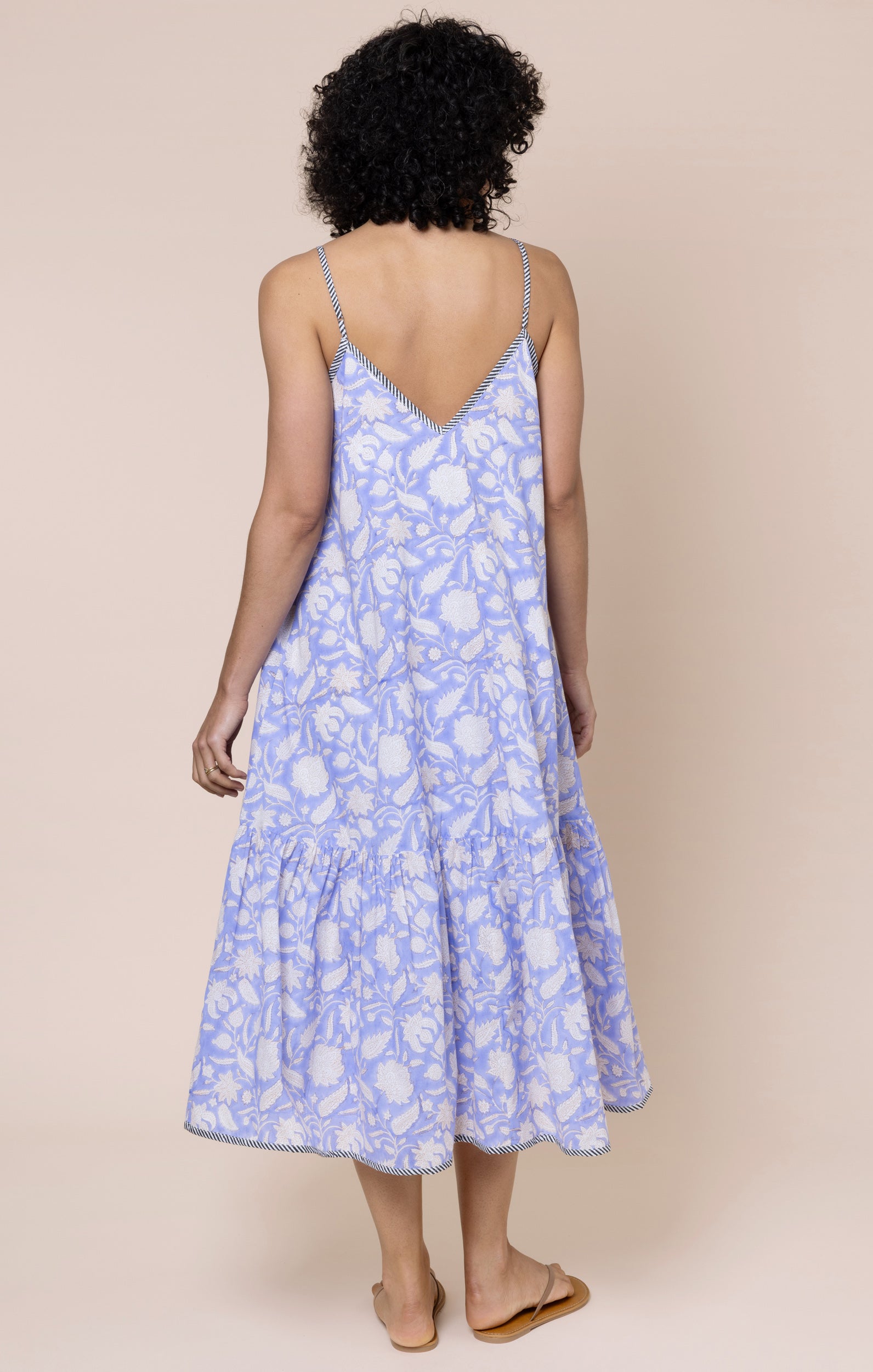 Flamingo Pomegranate Block Print V Neck Midi Dress