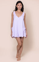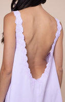 Turn heads in this charming low back dress in soft faded lilac poplin.