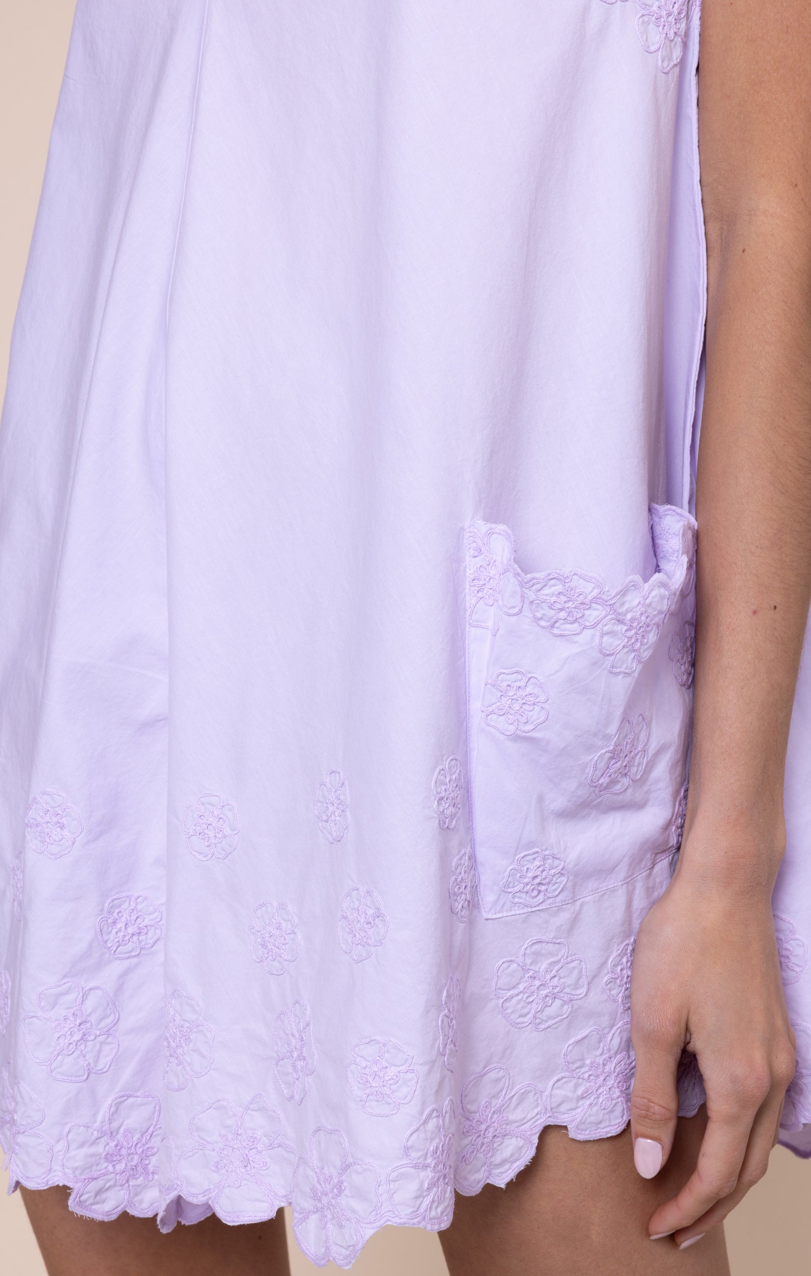 Lilac Poplin Low Back Dress with Floral Cord Embroidery