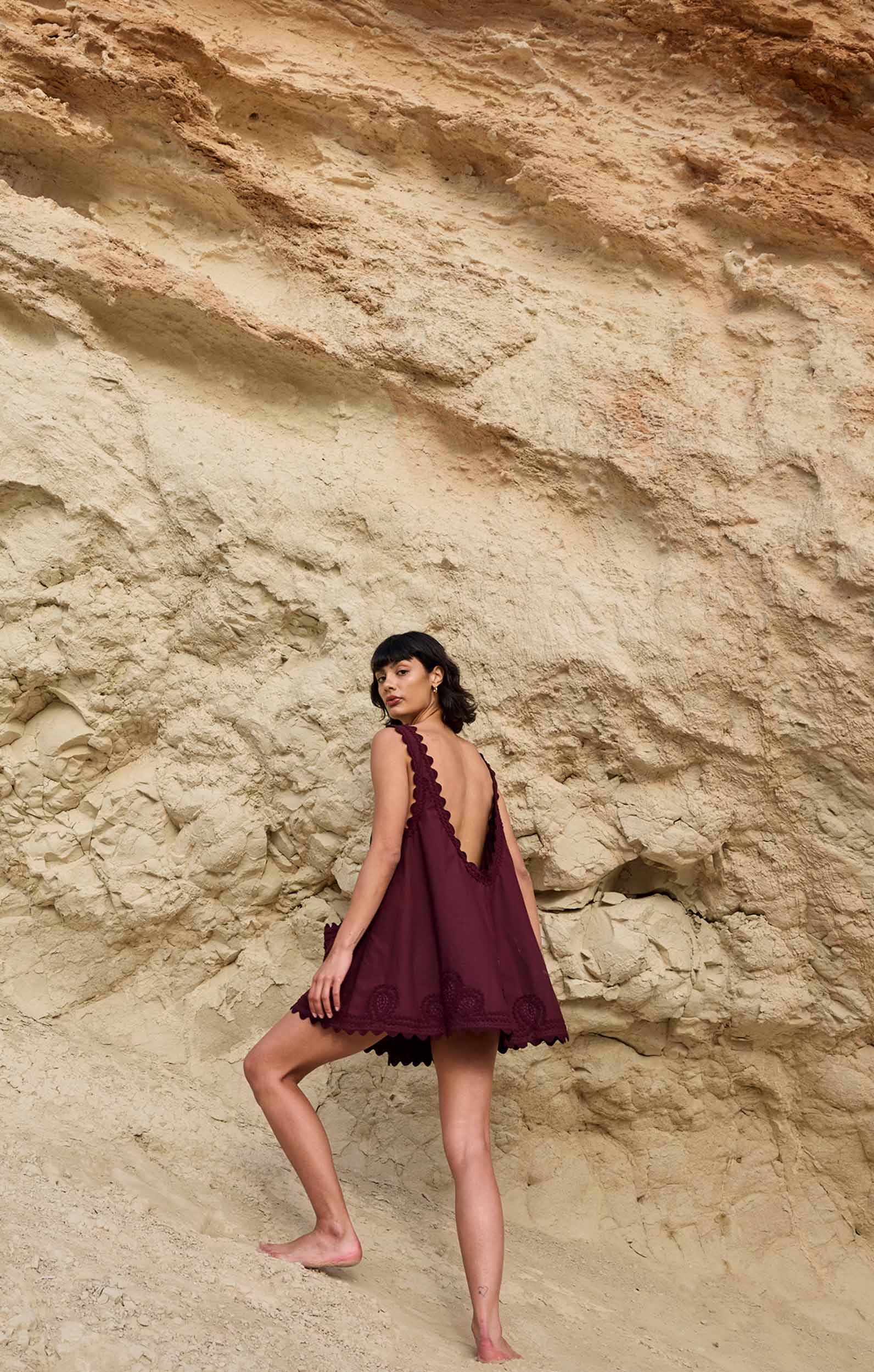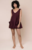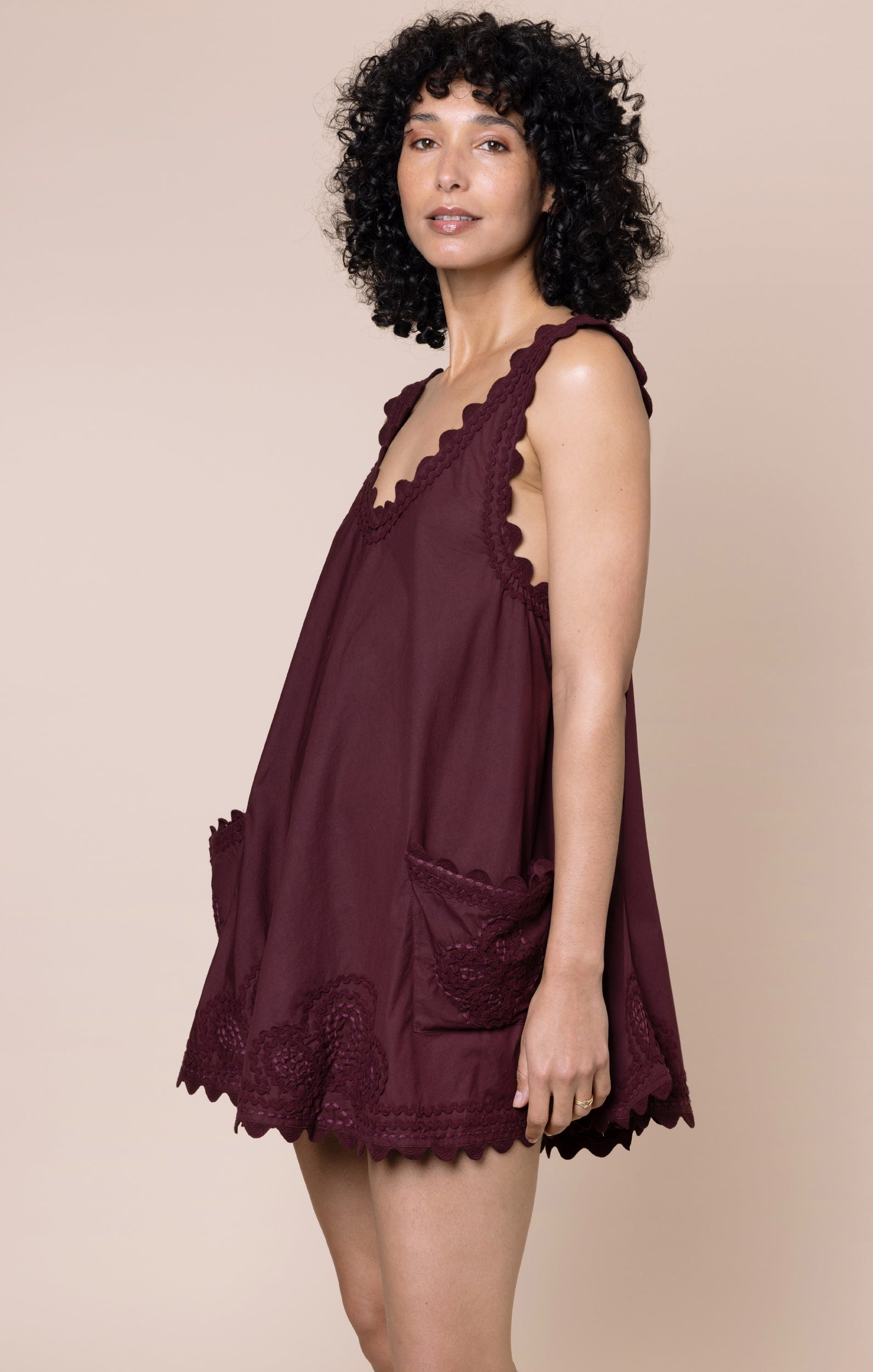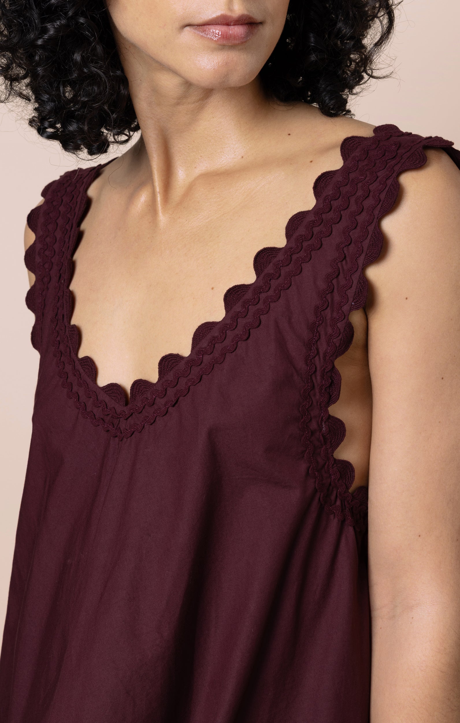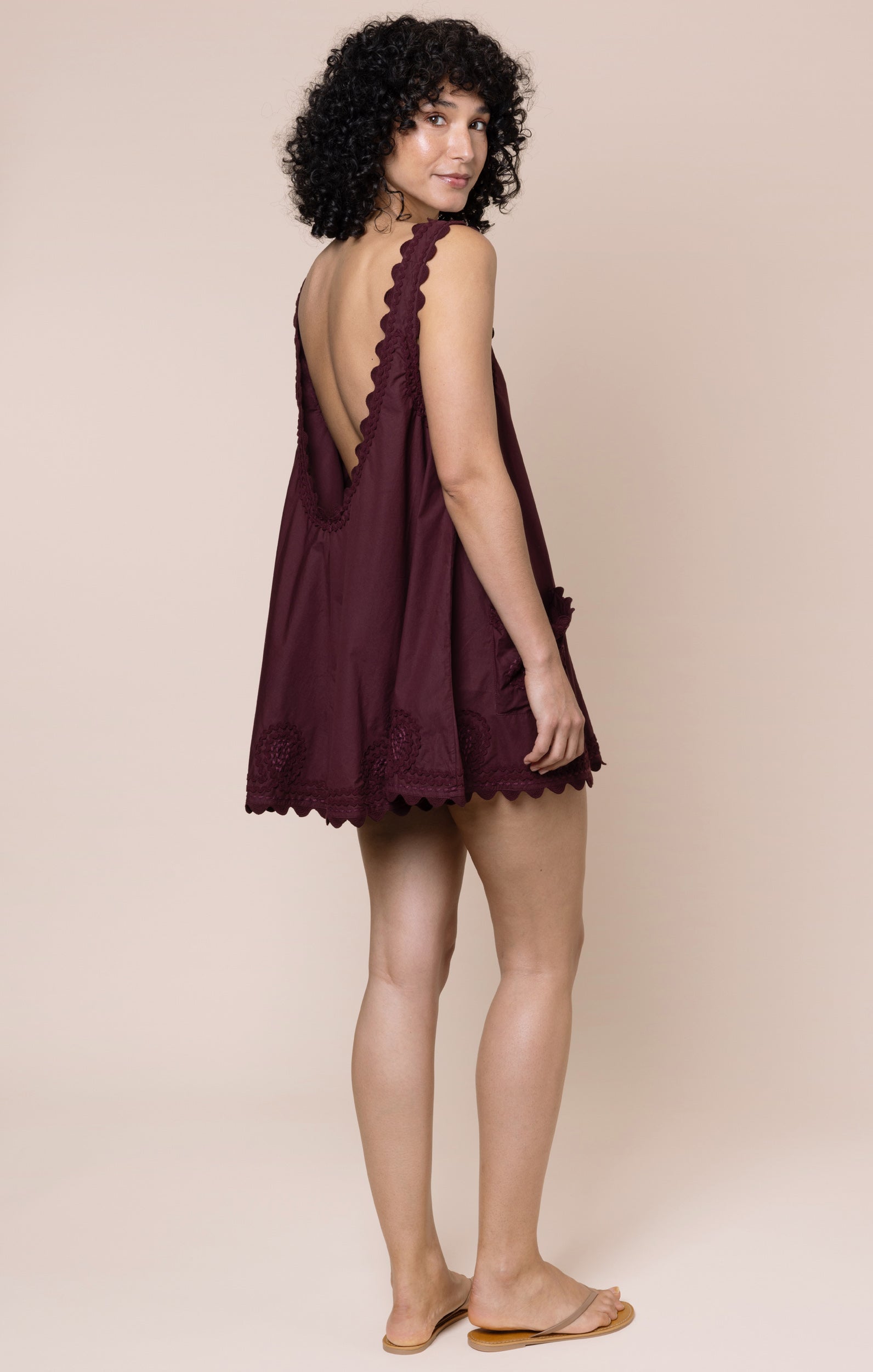 Designed to slip on and go, it features a scooped low back that's guaranteed to get compliments. This rich burgundy poplin is perfect with a tan, while delicate ric rac embroidery adds a fun finishing touch. Effortless style with maximum impact.