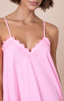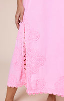 This washed-out neon colour is bright and versatile. Pair with clashing colour for girl’s weekends, metallic accessories for date night or tan leather on hand-luggage only mini breaks. The deep V at both front and back keeps this relaxed fit silhouette flattering, aided by large side slits.