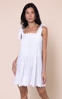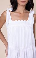White Pintuck Dress in Poplin with Ric Rac Embroidery