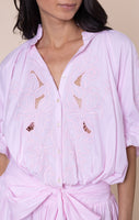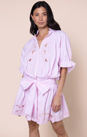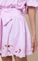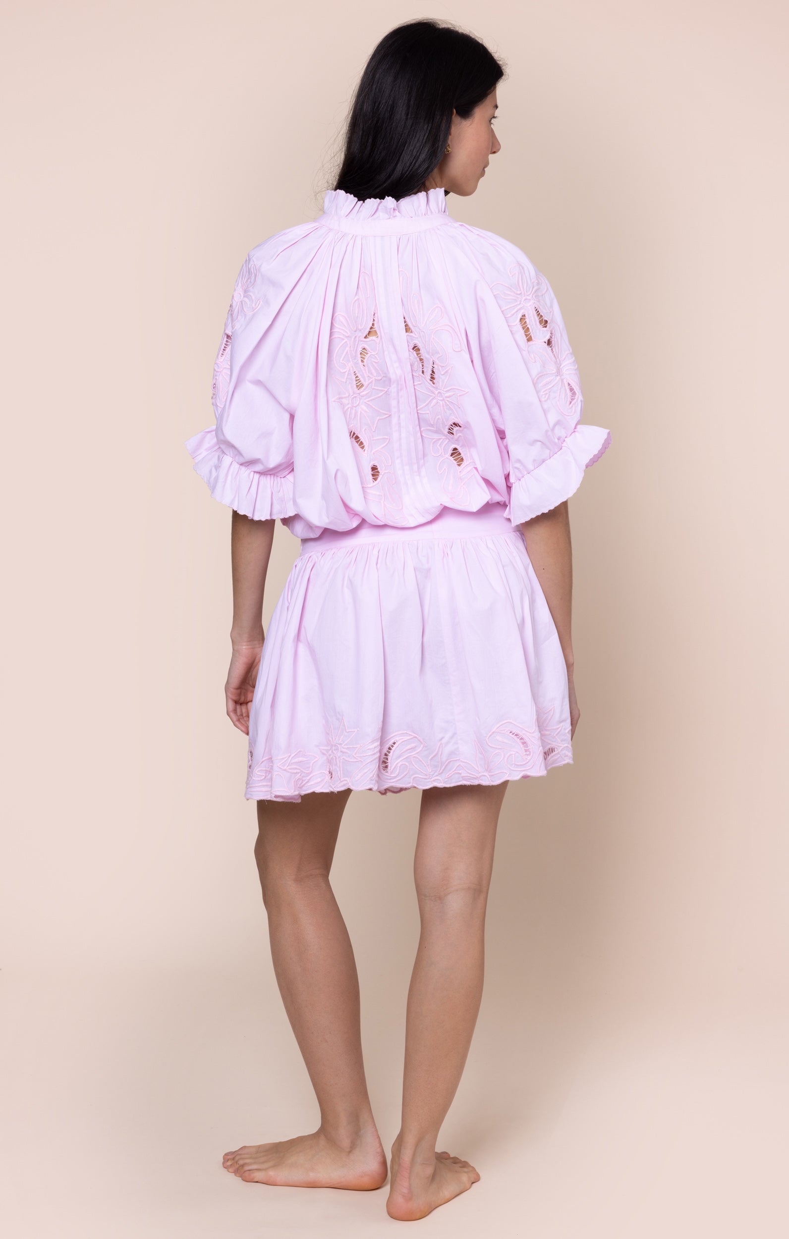 Petal Pink Blouson Dress with Cut Out Embroidery